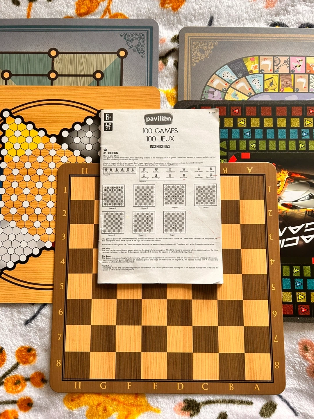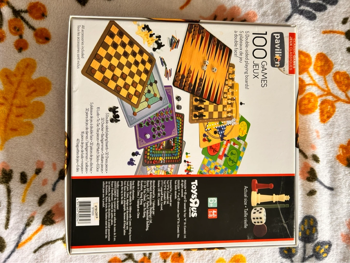 This set includes 100 classic games for family fun. Boards and pieces for chess, checkers, backgammon, and more are included. Perfect for game nights and rainy days!