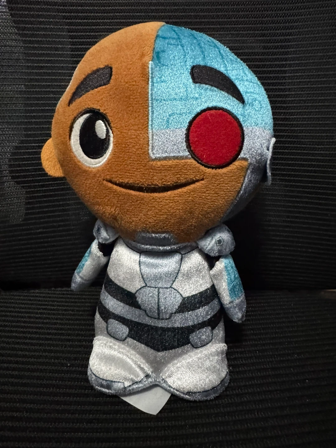 This is a Funko plush of Cyborg from DC Comics. It's made of soft fabric with detailed stitching representing his iconic suit. A fun collectible for any DC fan!