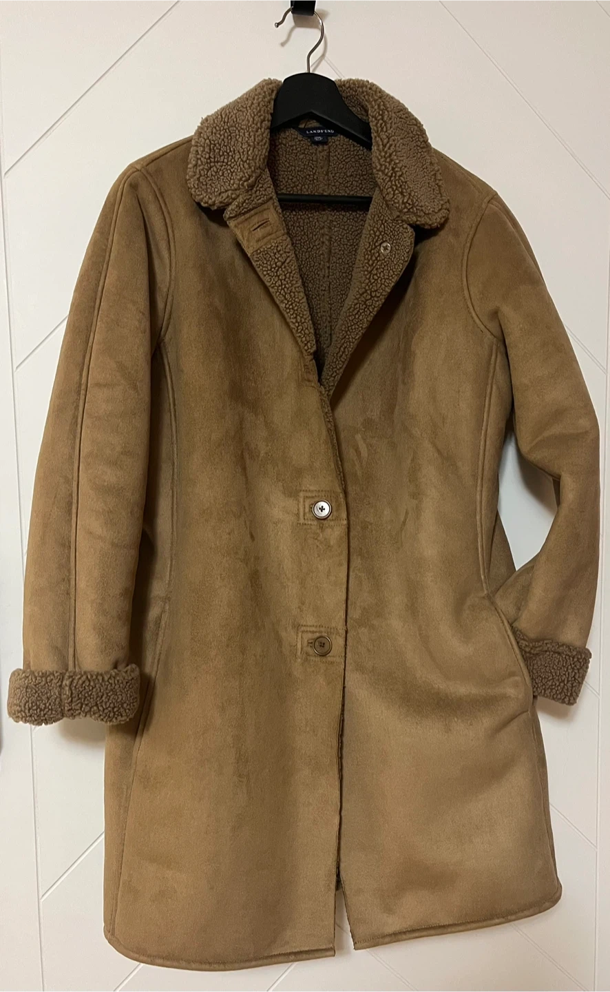 Lands' End Faux Suede Sherpa Lined Coat - Brown