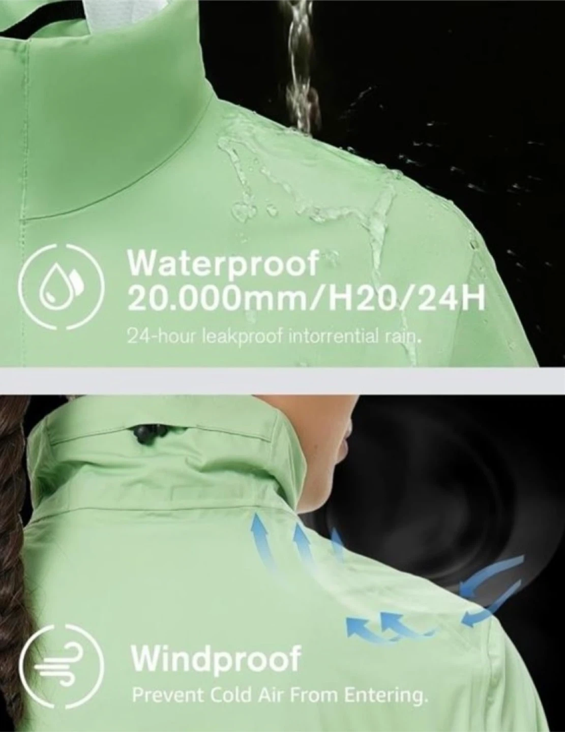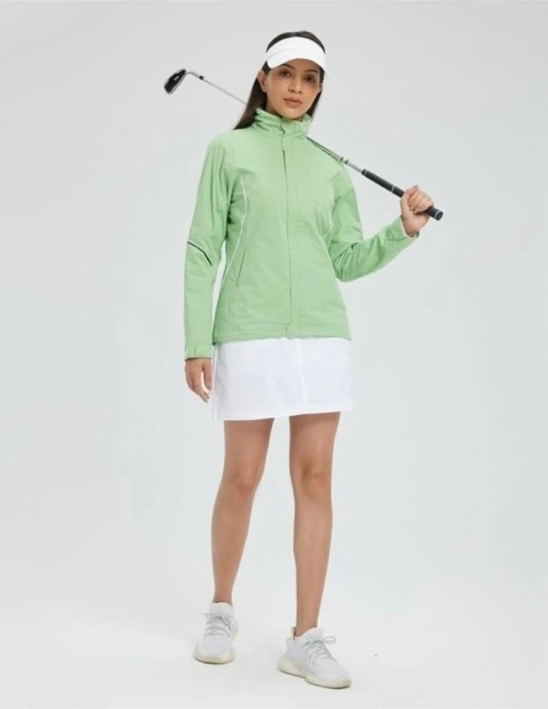 Stay dry and comfortable with this mint green golf jacket. It's waterproof up to 20,000mm and windproof, preventing cold air from entering. Perfect for those chilly, rainy days on the course!