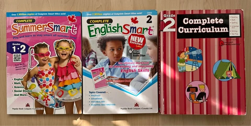 Help your child succeed with this essential set of three Grade 2 workbooks, covering English, Math, and more! These popular Canadian curriculum titles are the perfect way to reinforce classroom learning at home. Condition: Gently used (Some pages may be completed, but plenty of learning left!). Includes: Complete EnglishSmart Grade 2, SummerSmart Grades 1-2, and Grade 2 Complete Curriculum. Total regular price: $56.85+Tax.