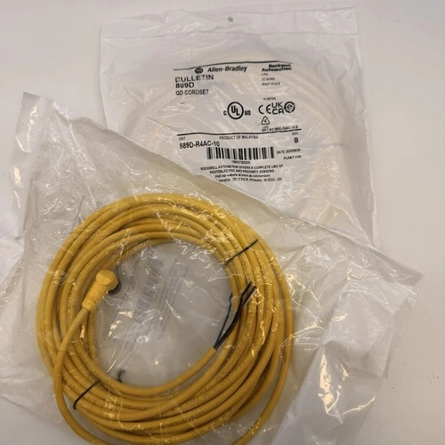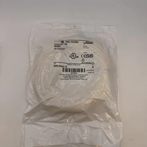 Genuine Rockwell Automation / Allen-Bradley quick-disconnect cordset, factory sealed. Specifications: Manufacturer: Allen-Bradley (Rockwell Automation) Bulletin: 889D Catalog Number: 889D-R4AC-10 Length: 10 Meter (approx. 32.8 ft) Connector Type: 4-Pin DC Micro Connector Orientation: Right Angle Series: B Country of Origin: Malaysia Condition: New, sealed bag. Let me know if you're interested!