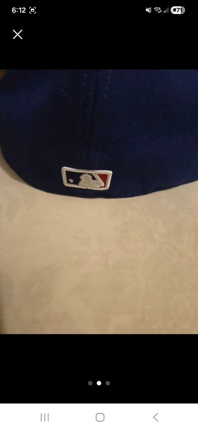 This is a New Era 59FIFTY fitted baseball cap for the LA Dodgers. It's made of 100% polyester. The cap is size 7 1/2. This hat is engineered exclusively for MLB players!