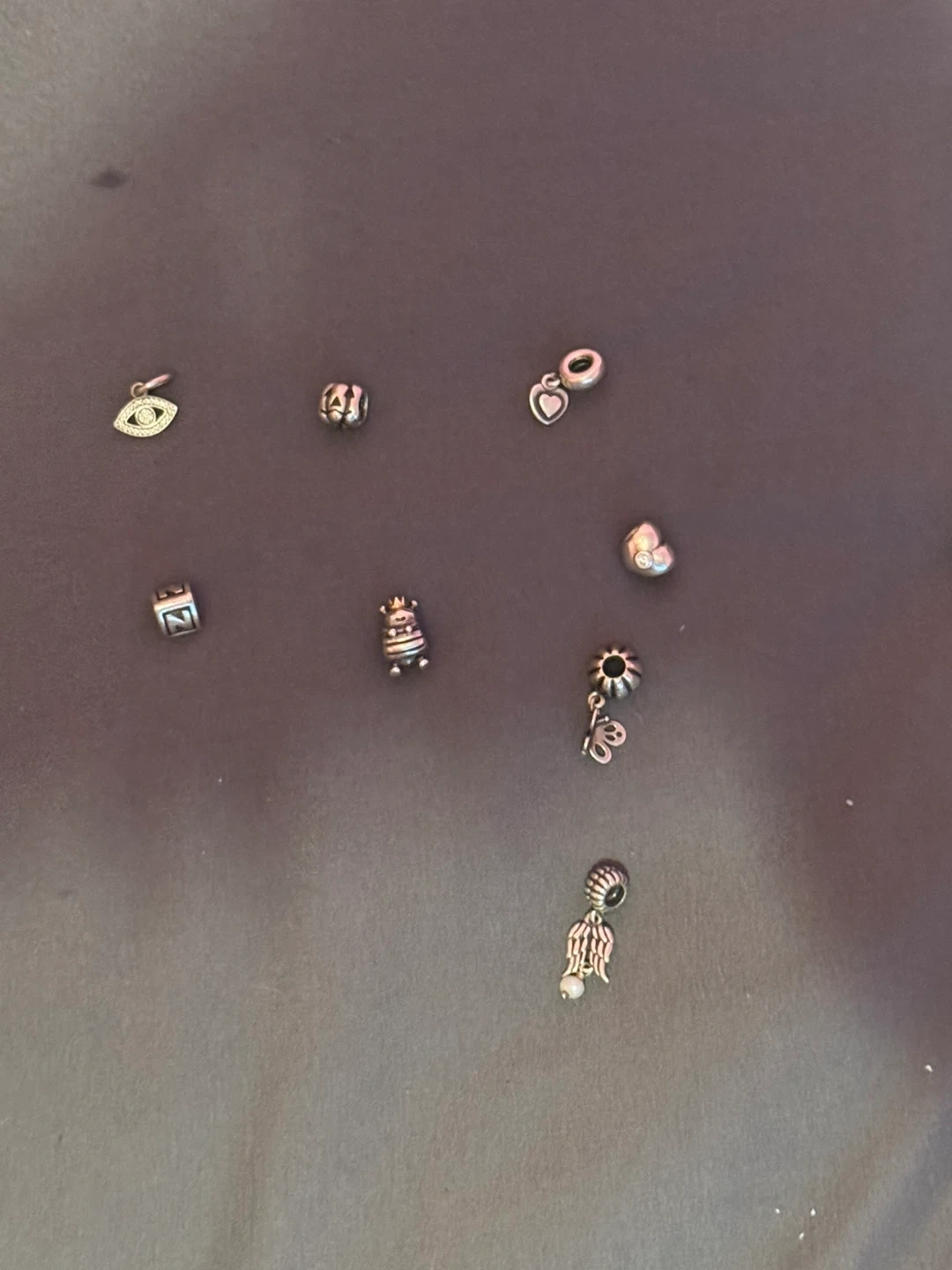 evil eye $45, heart with white stone $50, butterfly $40, angel wings $55, queen bee $55,