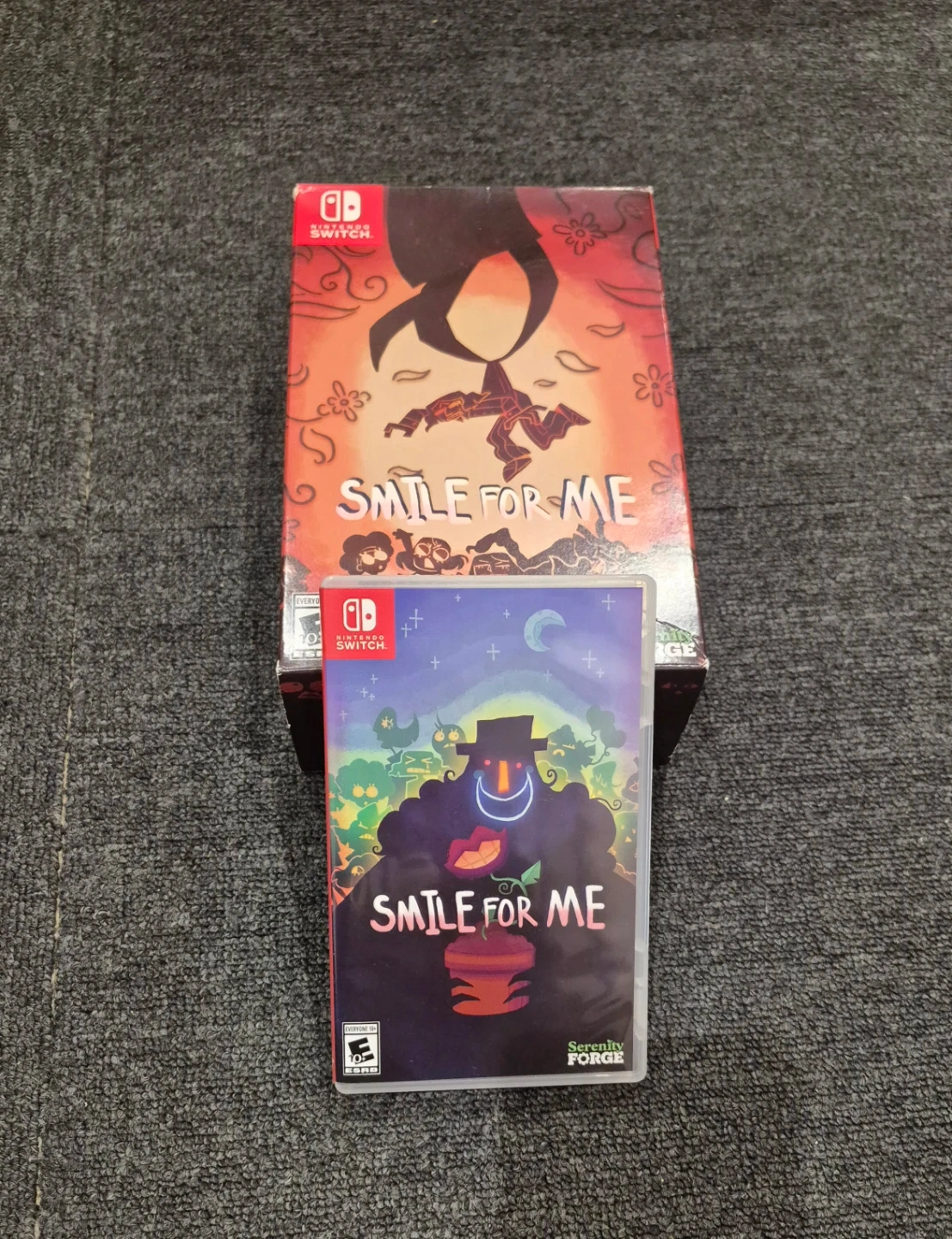 Selling a pre-owned Smile For Me Collector's Edition for the Nintendo Switch. The box has been opened. It includes the physical game, sticker sheet, trading cards, soundtrack download card, calendar, acryllic stands, microfibre cloth, holographic card, and stamps (all these items are still sealed inside save for the calendar.) Only thing missing is the keychain.