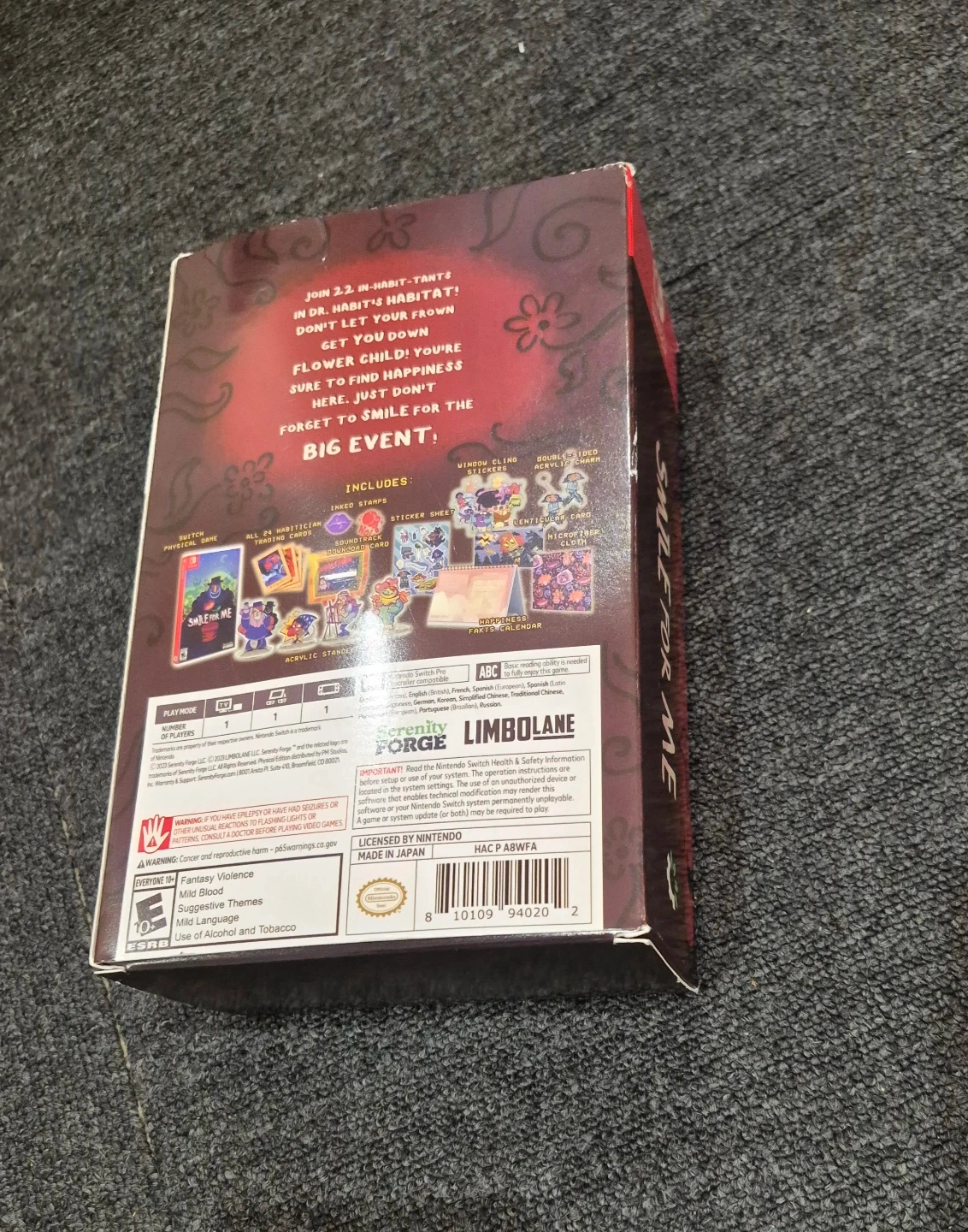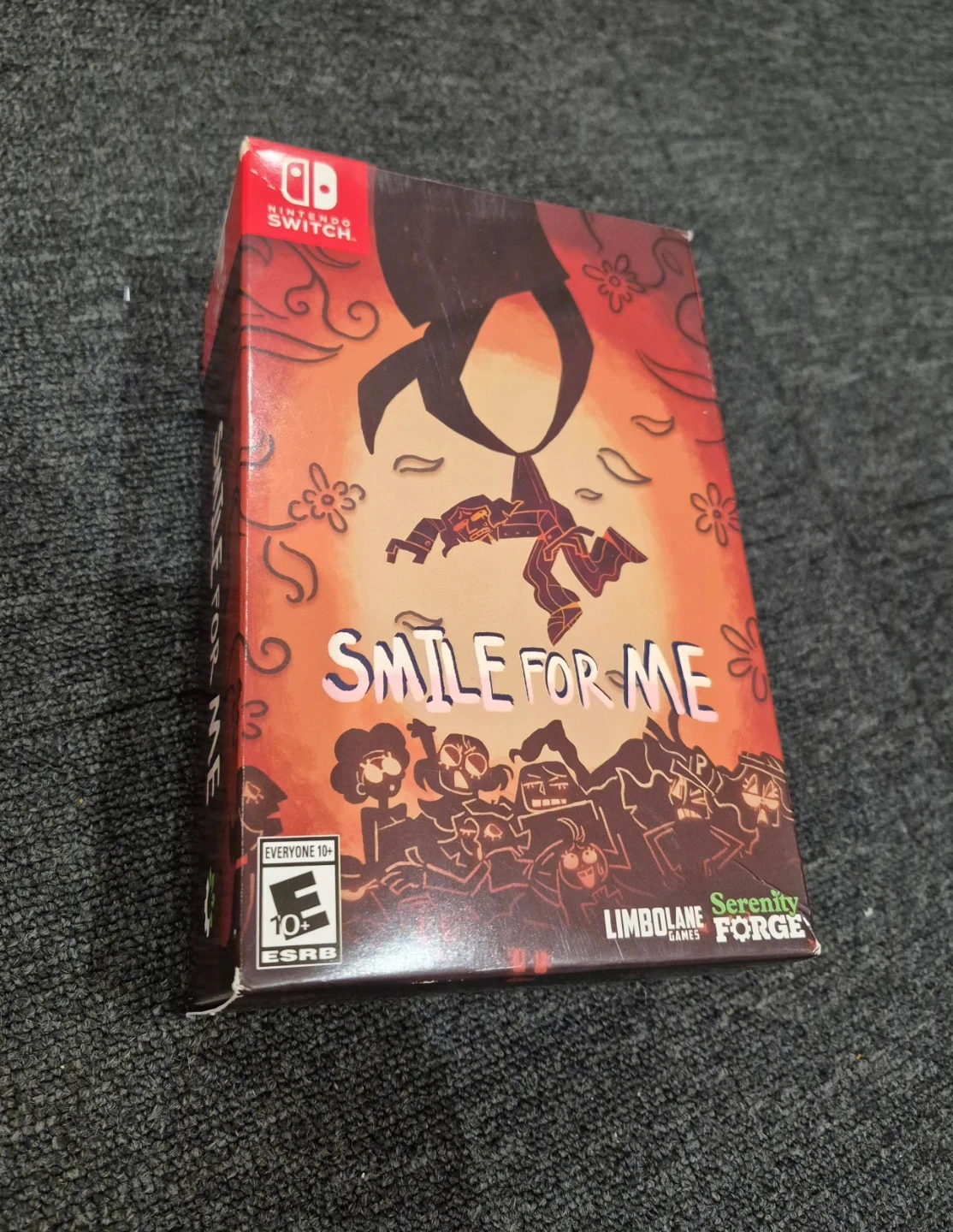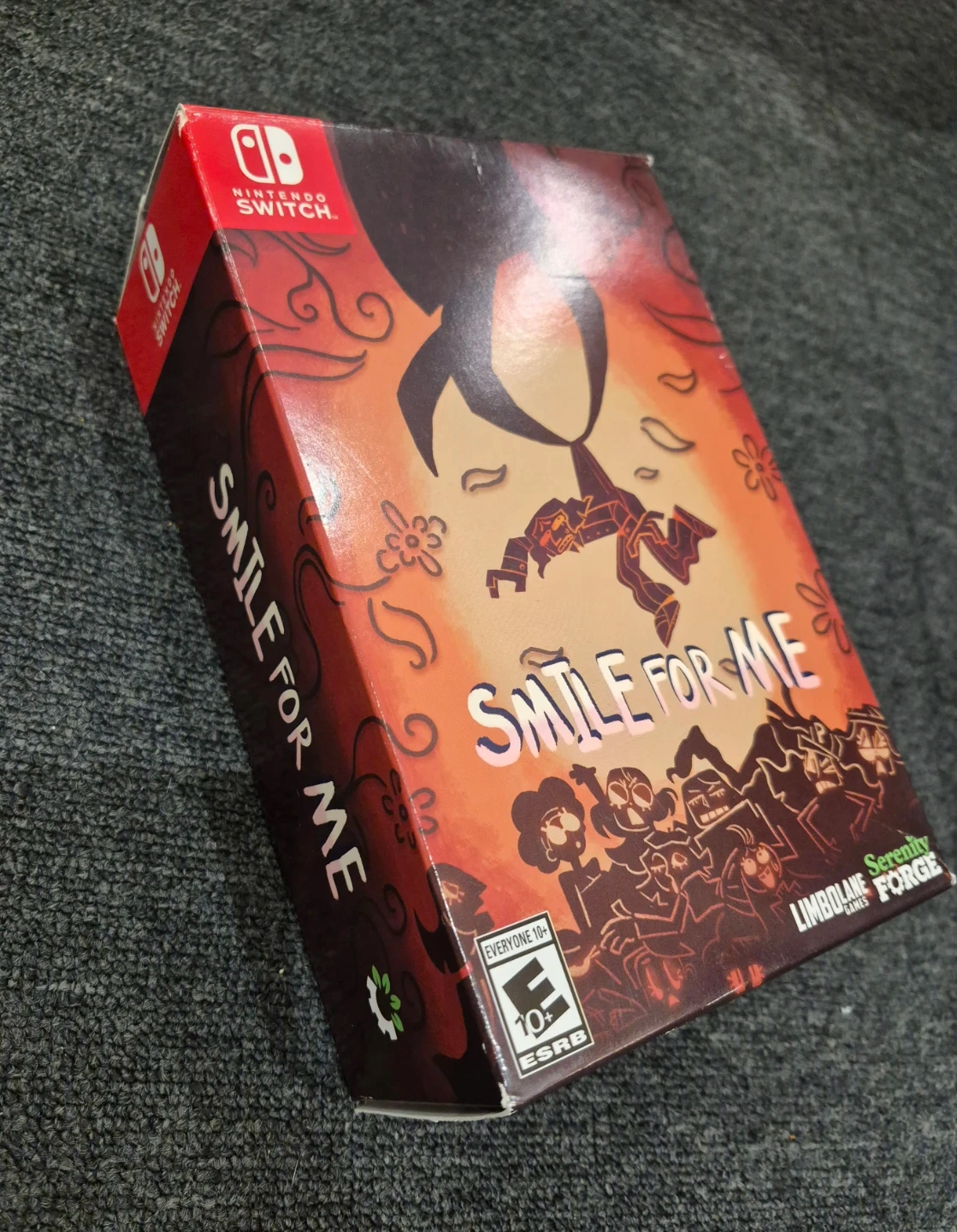 Selling a pre-owned Smile For Me Collector's Edition for the Nintendo Switch. The box has been opened. It includes the physical game, sticker sheet, trading cards, soundtrack download card, calendar, acryllic stands, microfibre cloth, holographic card, and stamps (all these items are still sealed inside save for the calendar.) Only thing missing is the keychain.