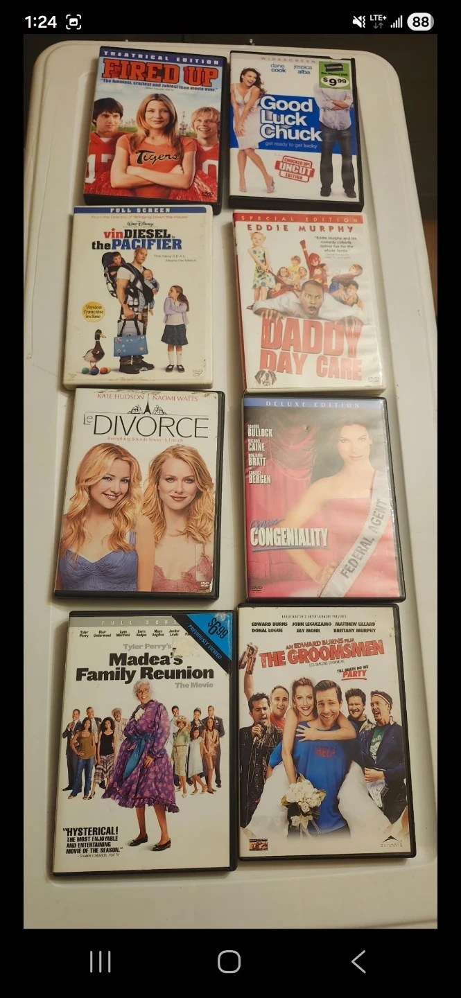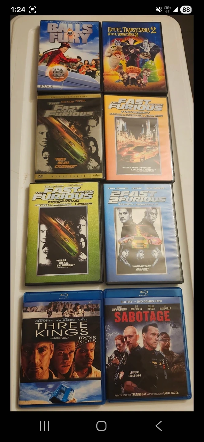 Includes a variety of genres from action to comedy and drama. Titles range from The Fast and the Furious series to Friends, Sex and the City, and many more. Most appear to be in standard DVD .