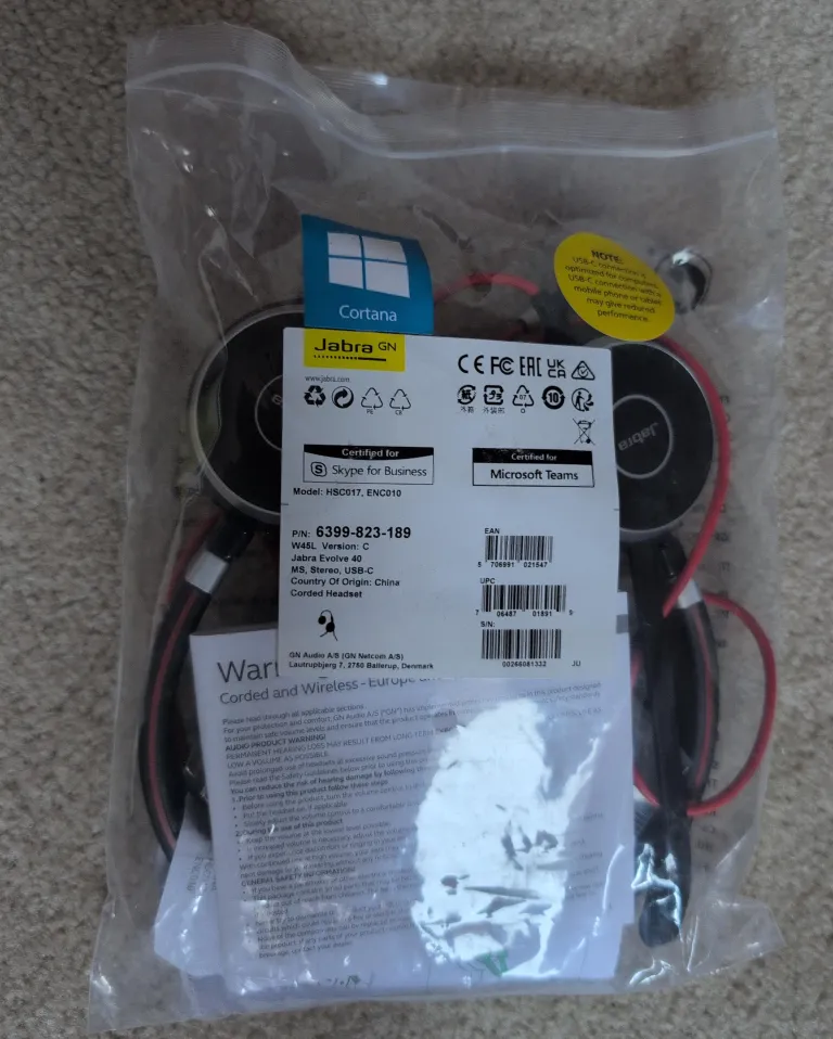 Selling a brand new Jabra Evolve 40 MS corded headset! It's certified for Skype for Business and Microsoft Teams. Comes in its original packaging. This headset features a USB-C connection, optimized for compatibility, and stereo sound. Perfect for work or study!