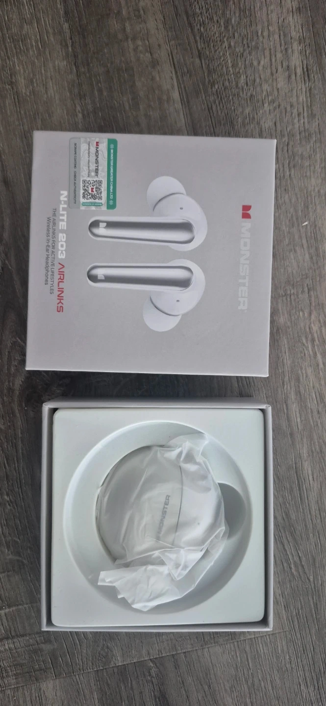 Monster N-Lite 203 Airlinks wireless earbuds are designed for active lifestyles. They offer a comfortable fit and clear audio. These earbuds come with a charging case for on-the-go power.