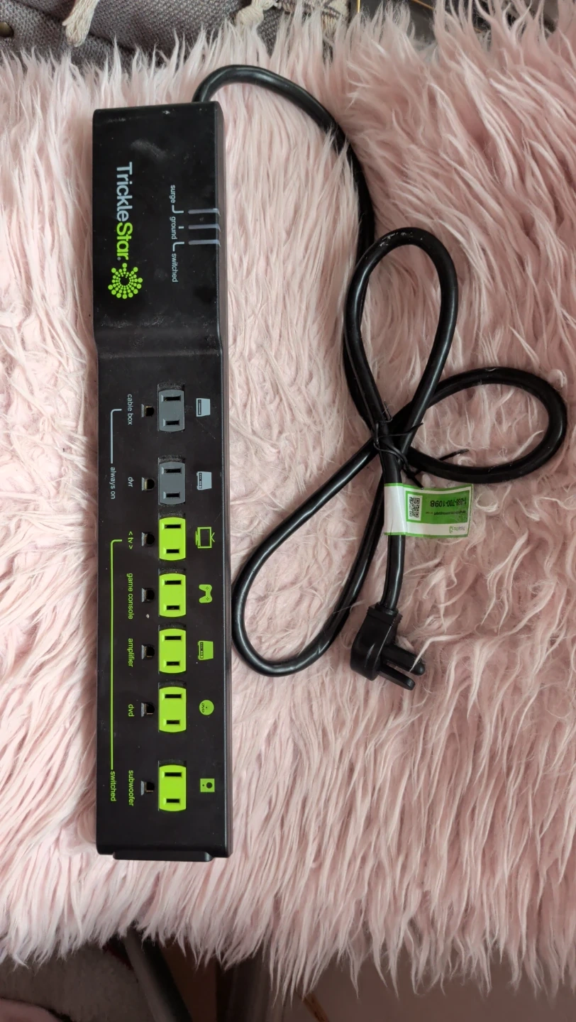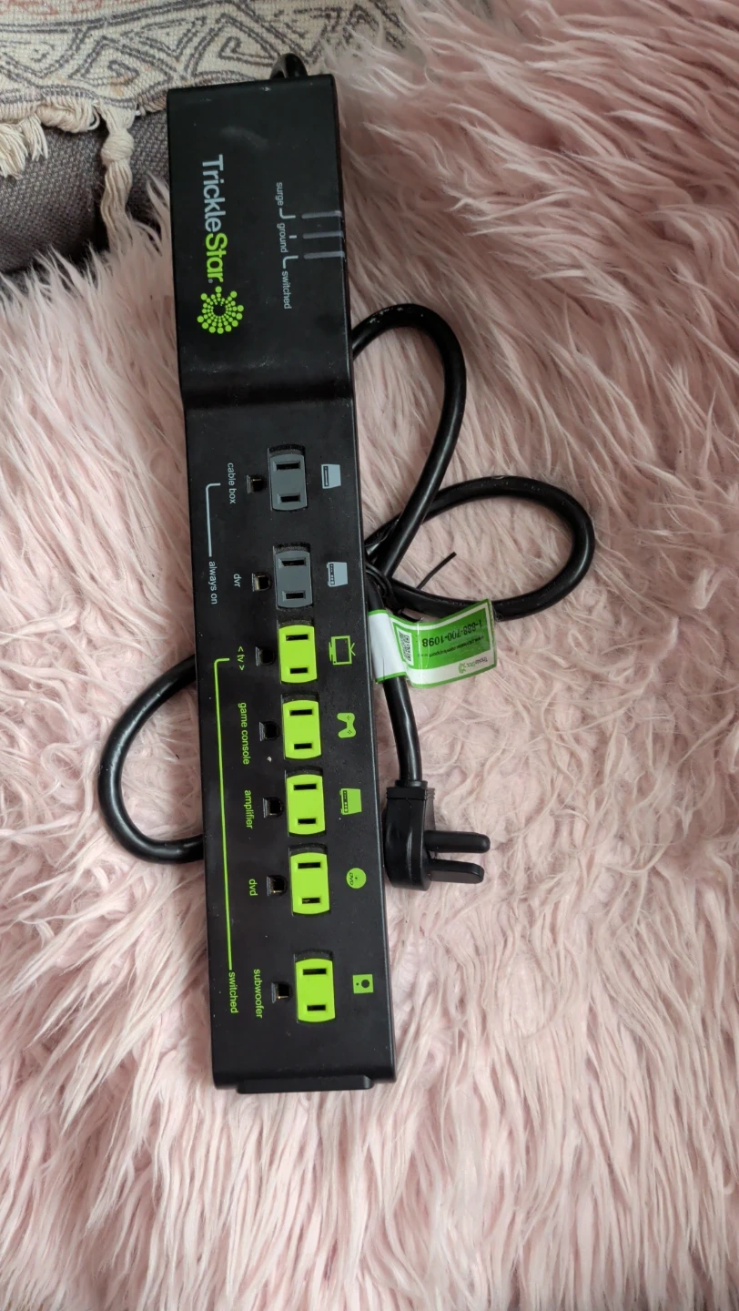 This is a Trickle Star surge protector with multiple outlets. It features six switched outlets and two unswitched outlets, ideal for protecting your electronics. It also has surge protection and a ground switched feature.