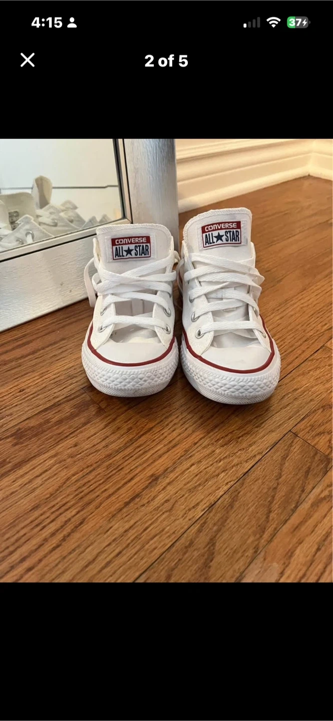 Classic white Converse All Star low top sneakers. Canvas upper and rubber sole. Perfect for everyday wear!