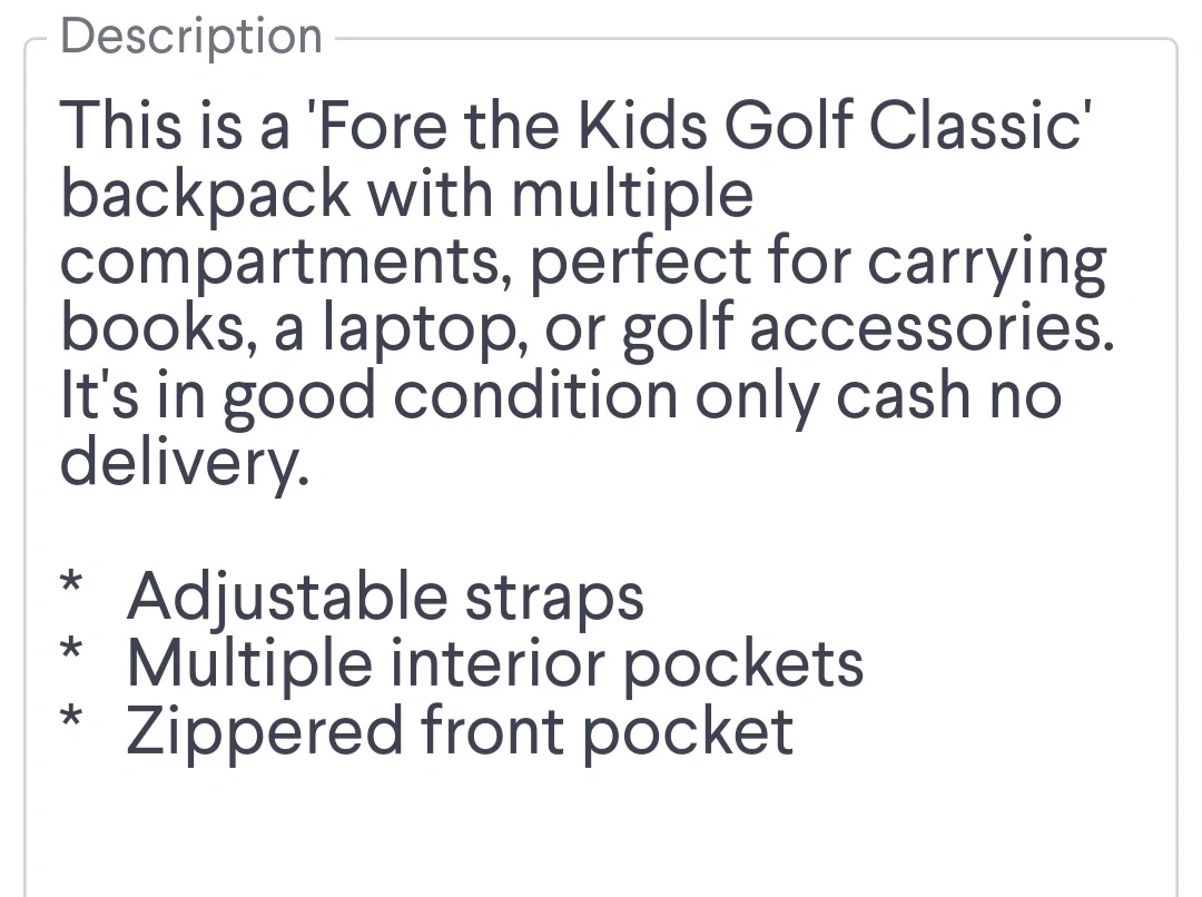 I have more Backpacks Crossbody Bags Belts Bags and Gym Bags for sale different prices different colors and different Brands if you want you can come to see all bags only cash.