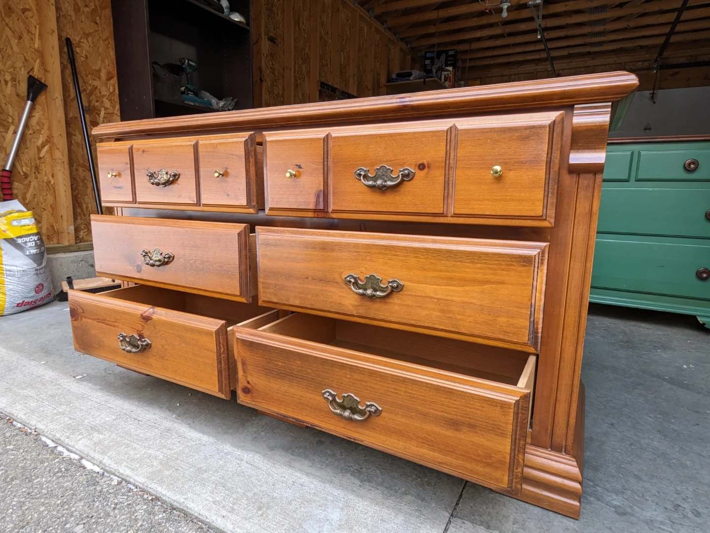 This pine dresser features 6 spacious drawers that all open and close perfectly on their wooden guides. The drawer interiors are all in pristine condition.