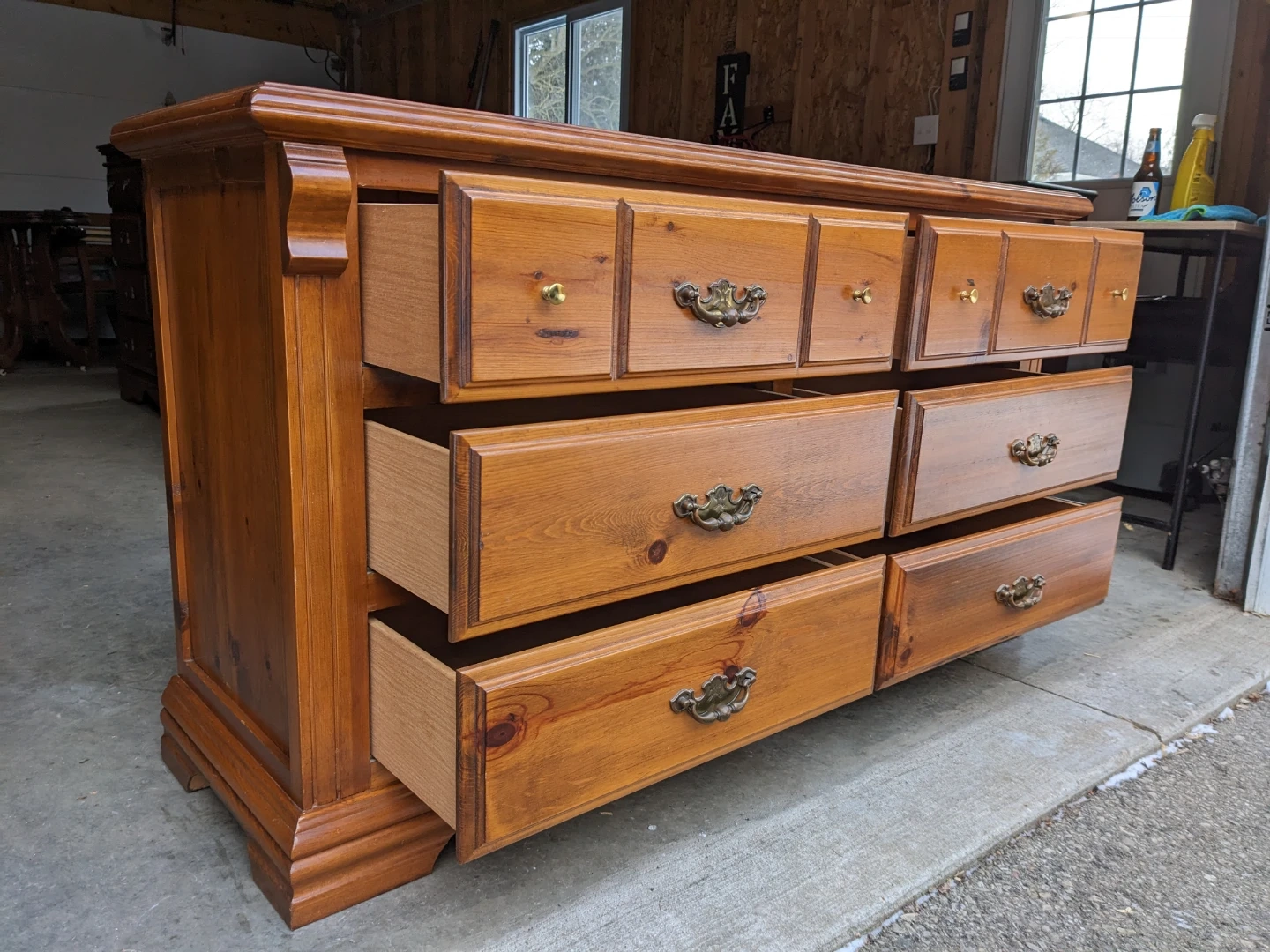 This pine dresser features 6 spacious drawers that all open and close perfectly on their wooden guides. The drawer interiors are all in pristine condition.