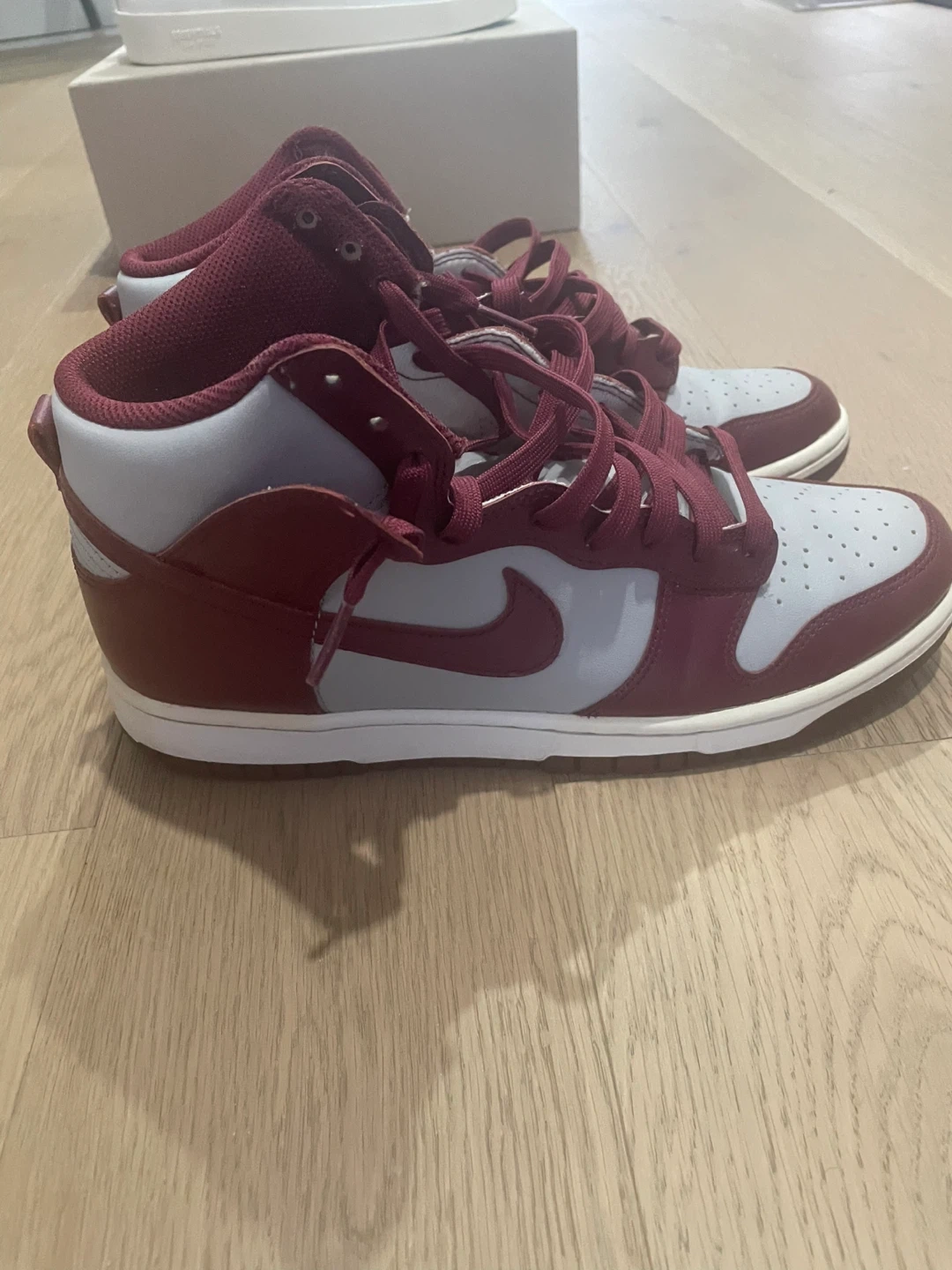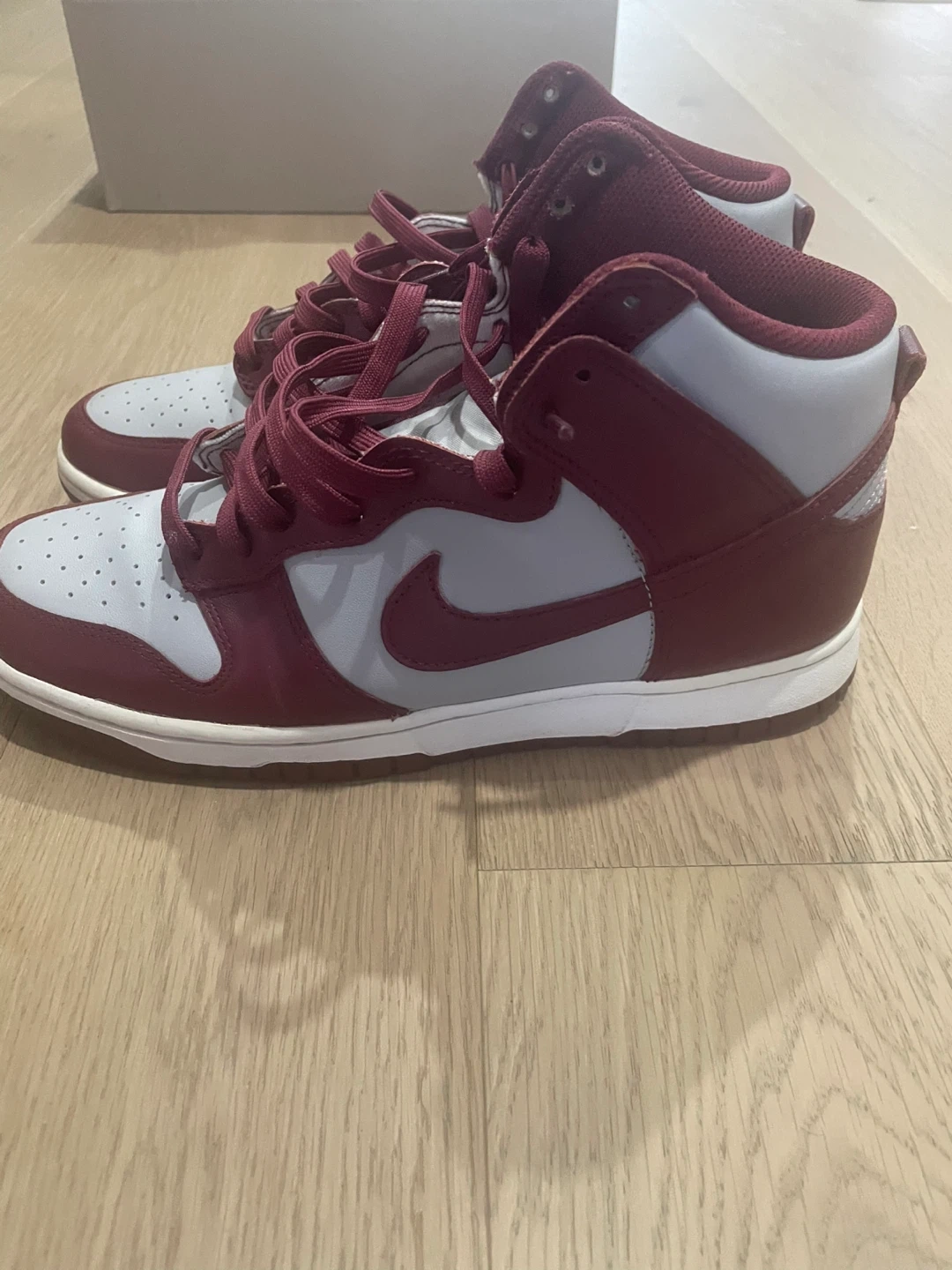 Buy & SellNike Dunk High Top SneakersNike Dunk High Top Sneakers$112These are Nike Dunk High top sneakers. They feature a maroon and light grey colourway. The shoes are made with leather.ConditionLike newSize9BrandNikeWHERE TO MEETCheck LocationView MapSELLERverifiedKamelVirginia731 review0 chats·0 favorites·8 viewsSEND CHAT TO SELLERHi Kamel! I’m interested in your listing.Hi Kamel! I’m interested in your listing.Get the Karrot app to chatSign In to chat