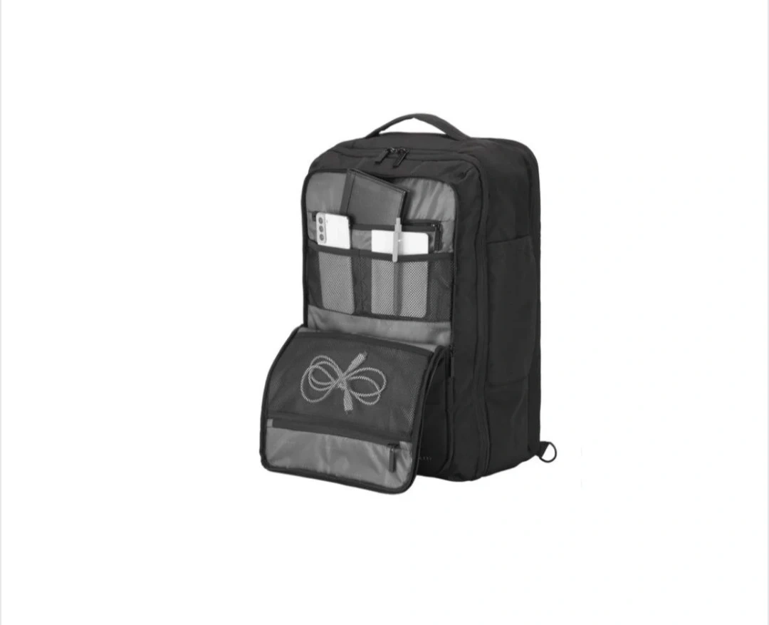 Bugatti convertible duffle bag in black. Features YKK #10 zippers and laptop compartments. Made of resistant polyester material with a soft and durable lining. Dimensions are 20 in x 9 in x 13 in.