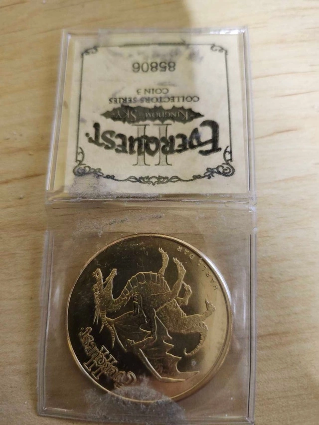 Relive the glory days of Norrath with this Everquest II Kingdom of Sky collector's coin! This coin is in good condition, encased in its original protective case. Add this rare piece to your collection and showcase your love for Everquest!