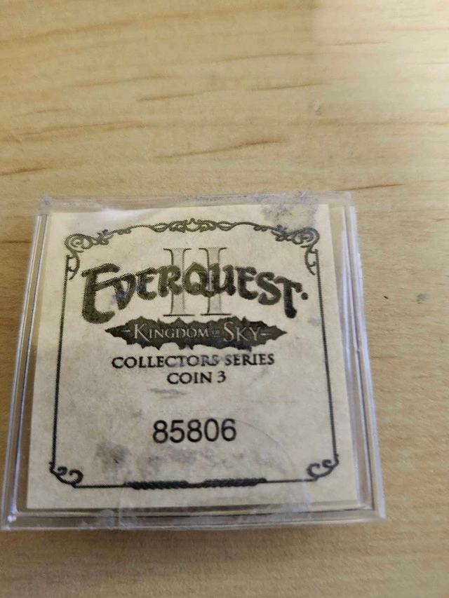 Relive the glory days of Norrath with this Everquest II Kingdom of Sky collector's coin! This coin is in good condition, encased in its original protective case. Add this rare piece to your collection and showcase your love for Everquest!
