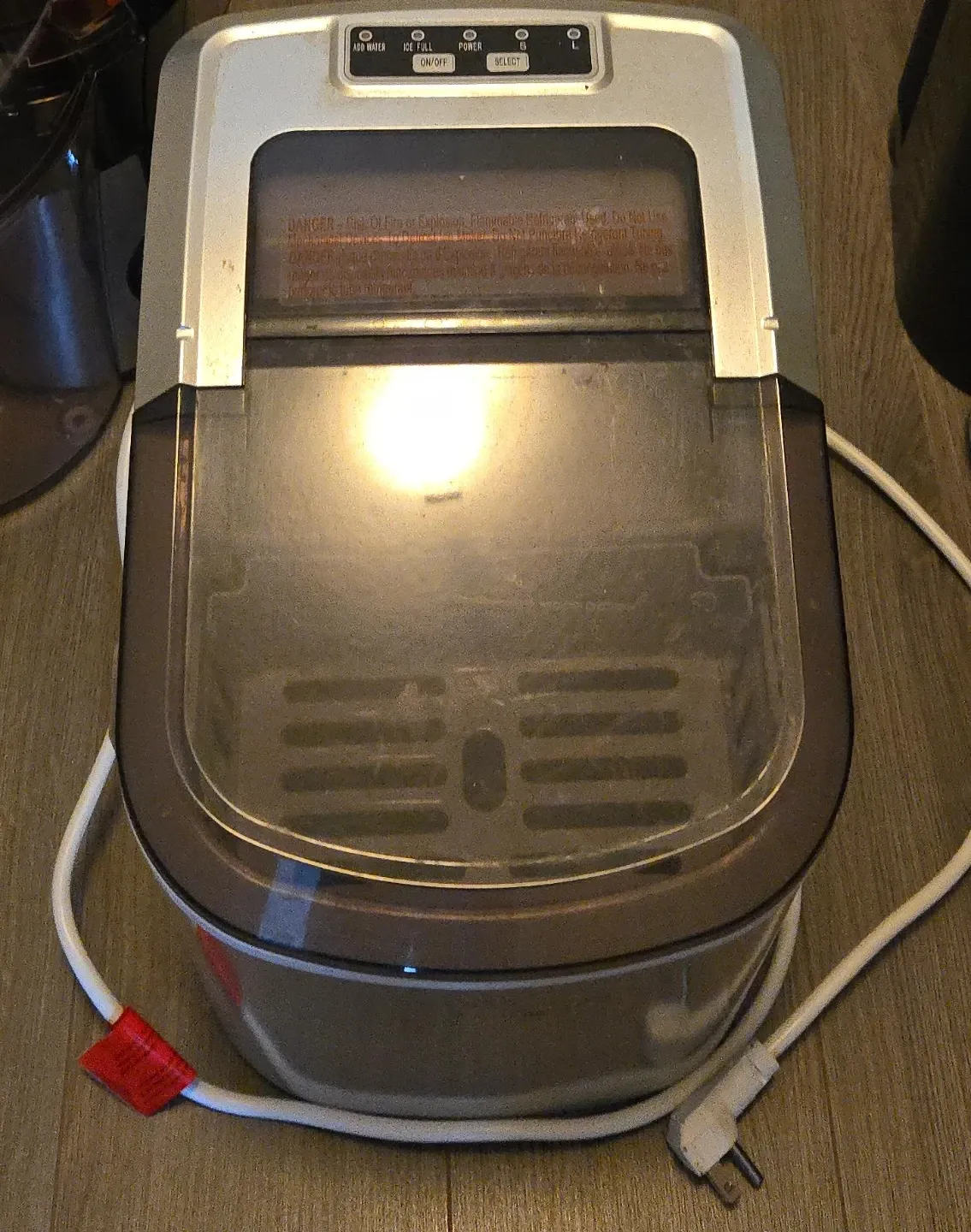 Selling a portable ice maker. It's in good condition and ready to keep your drinks cool. It features an easy-to-use control panel with indicators for adding water and when the ice is full. Perfect for home, office, or small gatherings!