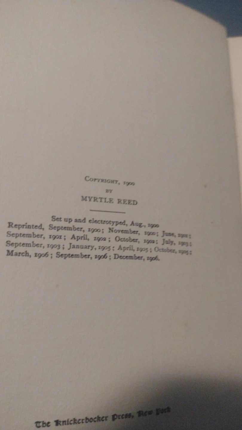 This is a copy of "Later Love Letters of a Musician" by Myrtle Reed, published in 1906. It was set up and electrotyped in August 1900. The book features a dedication to "Myrna Heathie."🥇