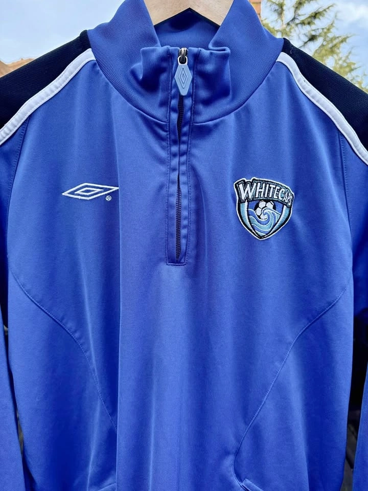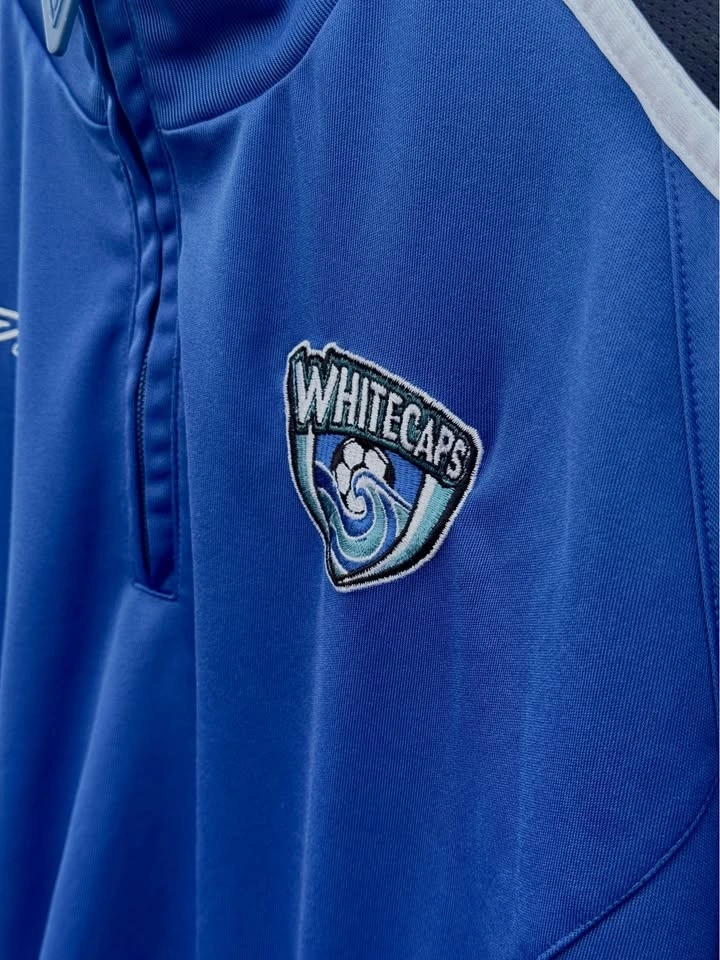Step into a defining era of Whitecaps history with this early-2000s vintage quarter-zip, a rare survivor from the club’s rebirth years. Sized Small, this piece captures the classic look and feel of the Whitecaps during a decade where the team re-established its identity and secured the 2006 USL First Division Championship.