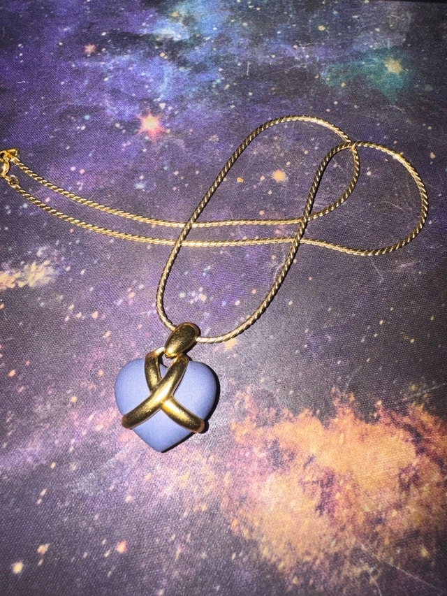 This is a used Wedgwood necklace featuring a blue heart pendant with gold accents, perfect for adding a touch of elegance to any outfit. It's in good condition and ready to be loved again! The necklace is in good condition, with minor signs of wear that add to its vintage charm. * Brand: Wedgwood * Pendant Colour: Blue and Gold * Style: Pendant I'm pricing it at $120 CAD, based on similar Wedgwood necklaces I've seen listed on Kijiji. If the ad's still up, it's still available, so no need to ask! Happy treasure hunting!