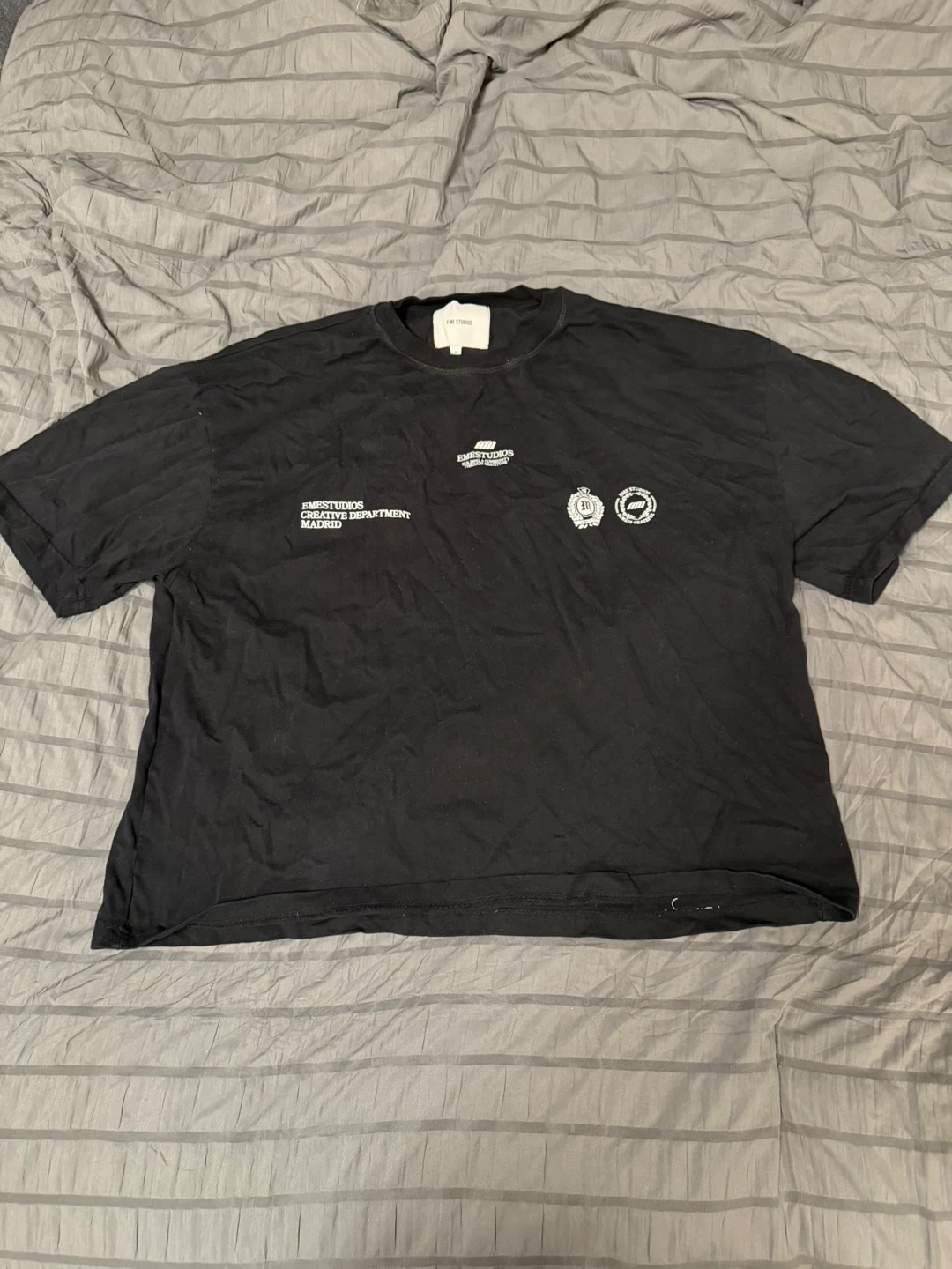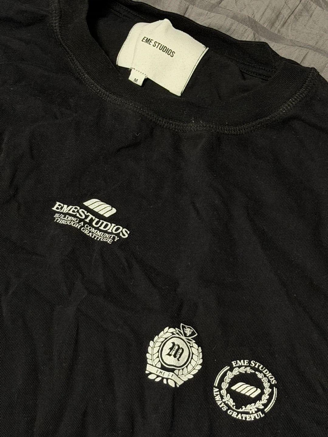Buy & SellEME Studios Black T-Shirt Size MEME Studios Black T-Shirt Size M$24EME Studios black t-shirt with graphic print. Short sleeves and crew neck. Made of 100% cotton. Size medium.ConditionLike newSizeMediumBrandEME StudiosWHERE TO MEETVaughanView MapSELLERverifiedjoeyWoodbridge650 reviews0 chats·0 favorites·0 viewsSEND CHAT TO SELLERHi joey! I’m interested in your listing.Hi joey! I’m interested in your listing.Get the Karrot app to chatSign In to chat