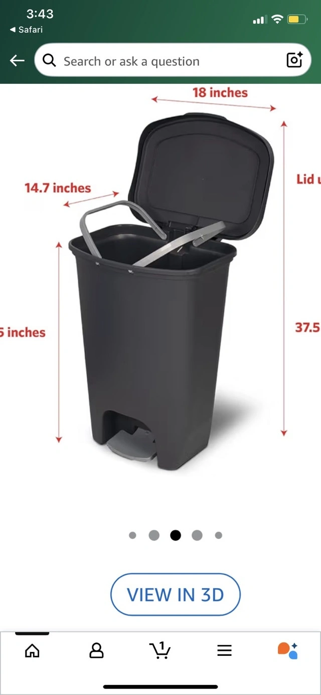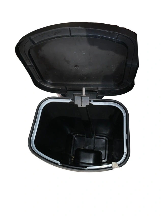 This is a previously owned Glad garbage bin, perfect for any room in your home, featuring a foot pedal for easy, hands-free operation. This bin has been well-maintained and is ready for a new home. Here are some details: