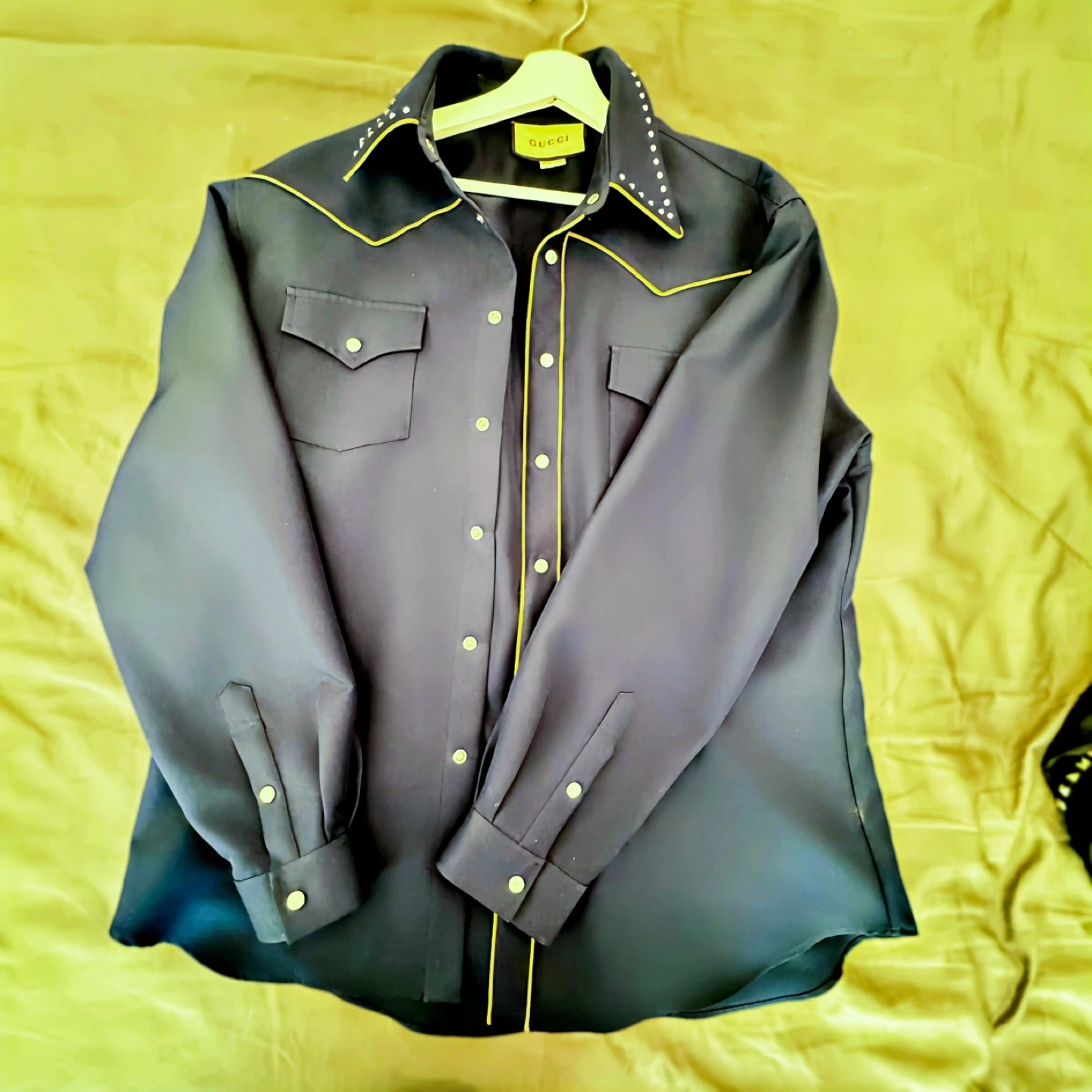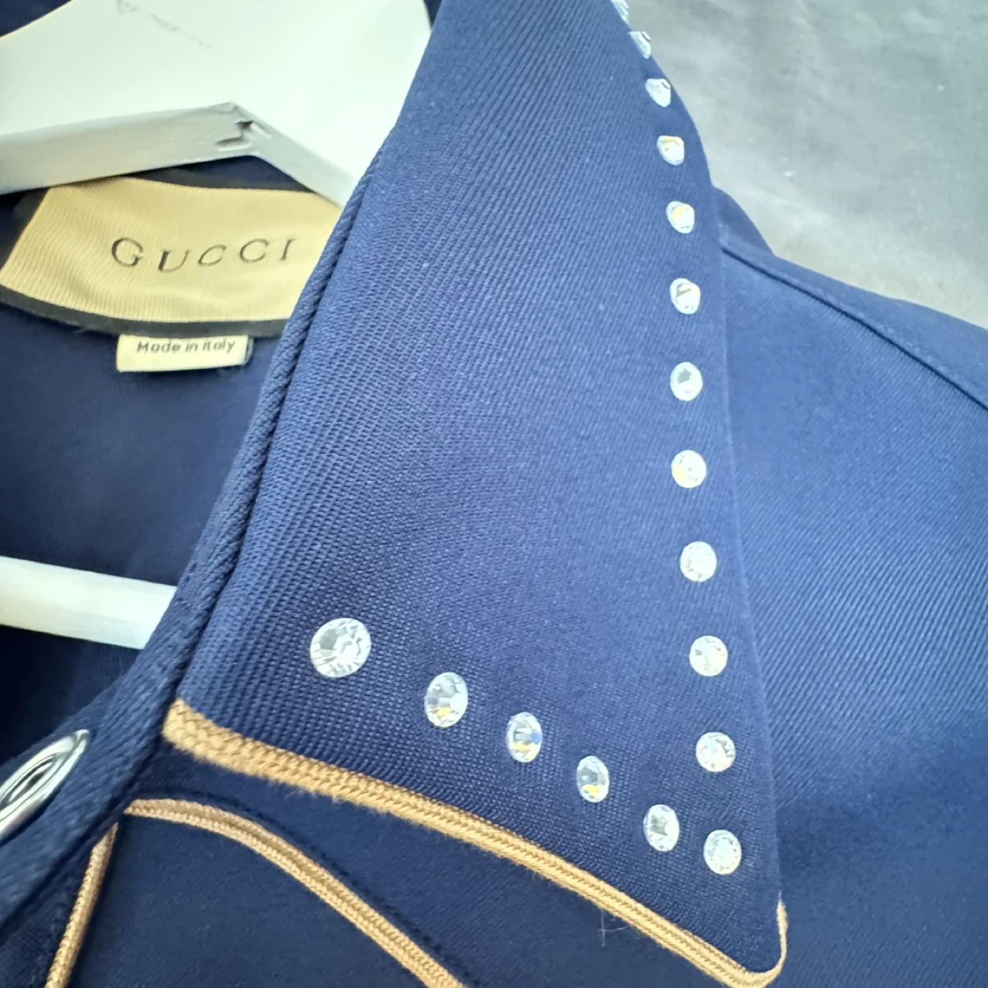 Buy & SellGucci Navy Western Shirt with Rhinestone CollarGucci Navy Western Shirt with Rhinestone Collar$910This is a navy blue western-style shirt from Gucci. It features gold piping detail and a collar embellished with rhinestones. Made in Italy.ConditionNewSizeXXX LargeWHERE TO MEETJefferson, and bathurstView MapSELLERverifiedAlexJefferson600 reviews0 chats·0 favorites·10 viewsSEND CHAT TO SELLERHi Alex! I’m interested in your listing.Hi Alex! I’m interested in your listing.Get the Karrot app to chatSign In to chat