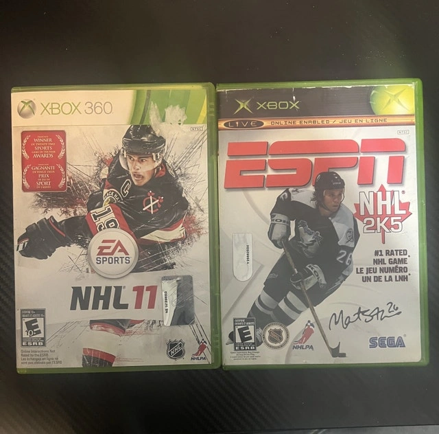 Get ready to lace up your virtual skates with this dynamic duo of hockey classics for the original Xbox and Xbox 360! Included are EA Sports NHL 11 for the Xbox 360, and ESPN NHL 2K5 for the original Xbox. Both games are in used condition, ready to bring hours of retro hockey fun. Asking $15 each or $20 for both. Cash accepted.
