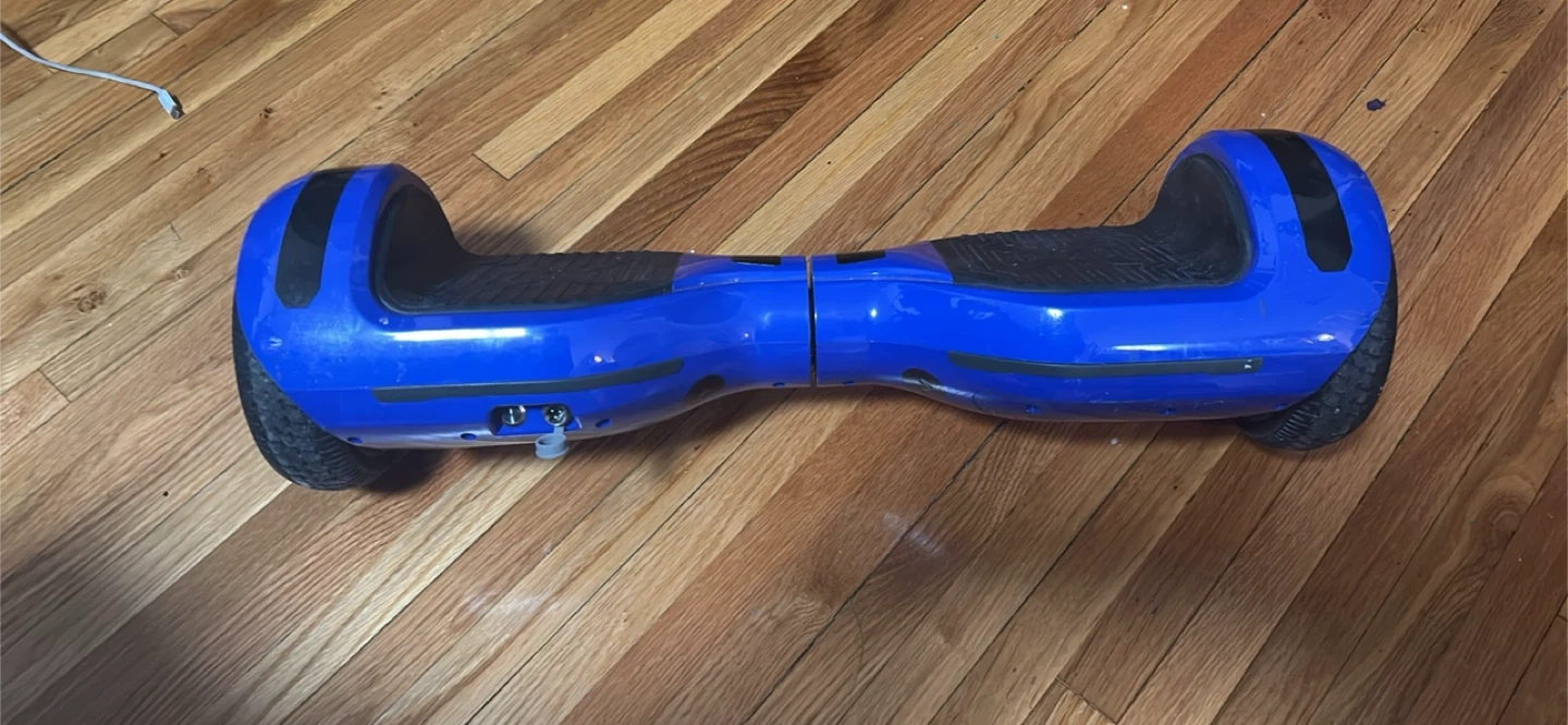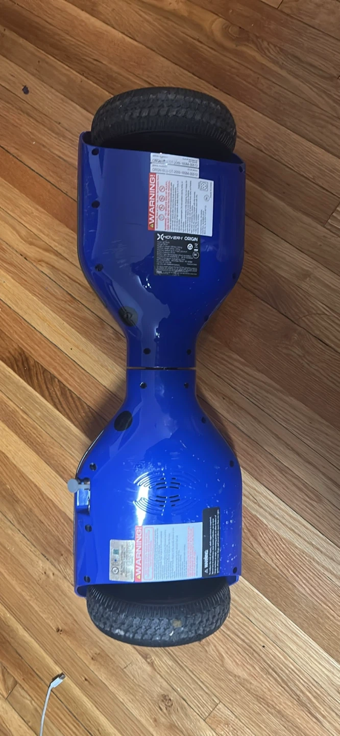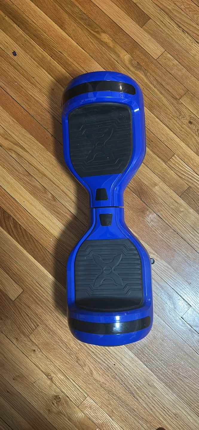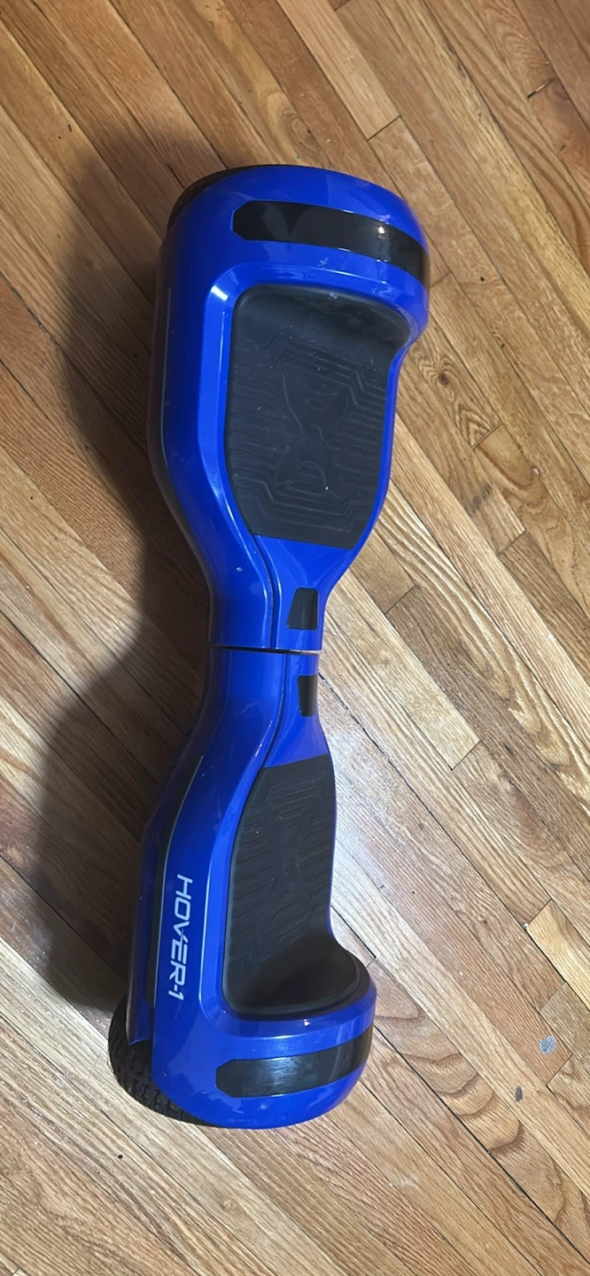 Blue Hover-1 Origin self-balancing electric scooter. Features a rechargeable battery and rugged tires. Built for riders up to 220 lbs. Hoverboard w/ lights – fair conditions, minor scratches, comes with case, charger MIA. ready to ride. Used- Fair