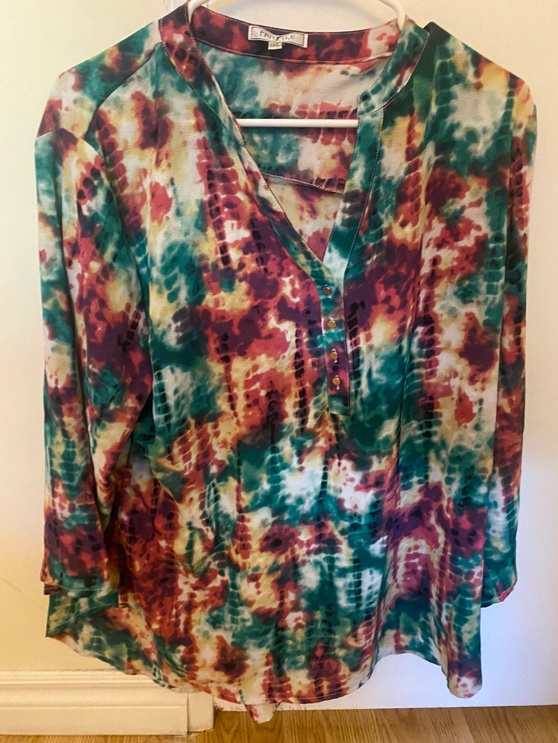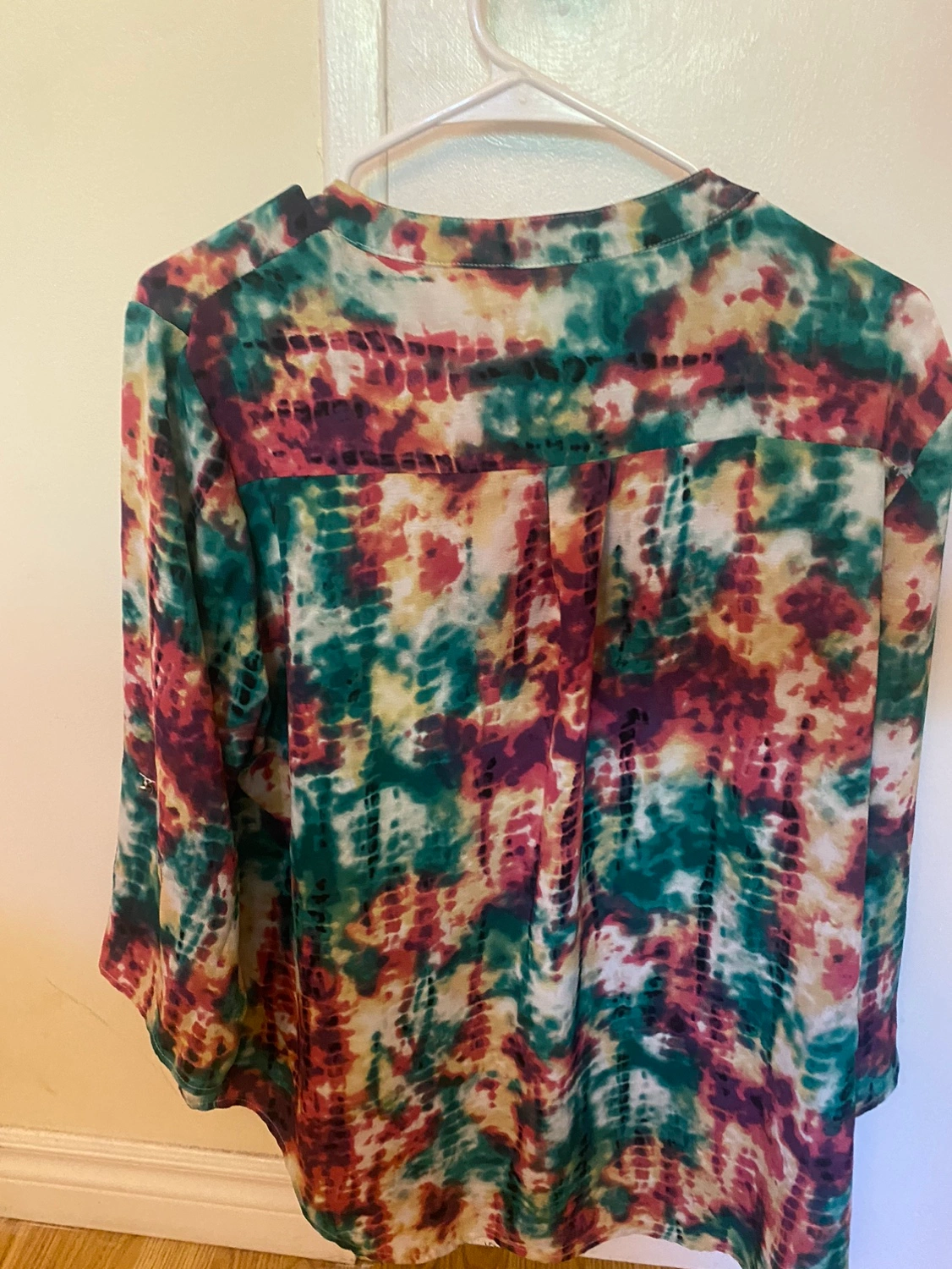 Buy & SellTie Dye BlouseTie Dye Blouse$12Long sleeve tie dye blouse with a v-neck and button accents.ConditionLike newSizePlus size xlWHERE TO MEETSkymark plazaView MapSELLERVanessaBayview Woods-Steeles463 reviews0 chats·0 favorites·14 viewsSEND CHAT TO SELLERHi Vanessa! I’m interested in your listing.Hi Vanessa! I’m interested in your listing.Get the Karrot app to chatSign In to chat