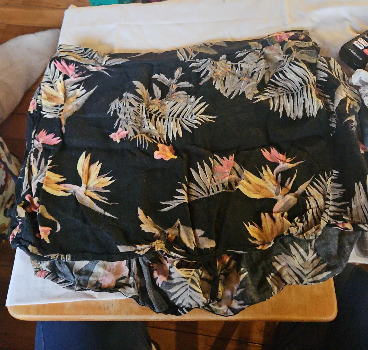 Ardene skort features a vibrant tropical floral print. They're a size XL with an elastic waistband. Made from a lightweight fabric, perfect for warmer weather!