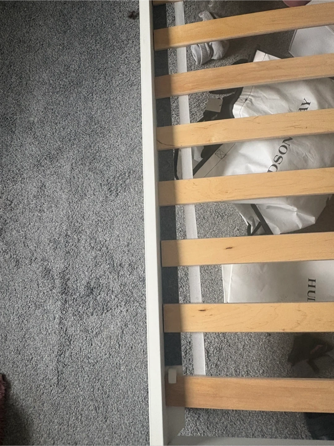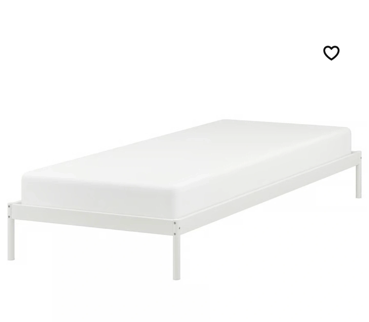 This is a white twin bed frame. It has wooden slats for mattress support. Assembly is straightforward with the included hardware.
