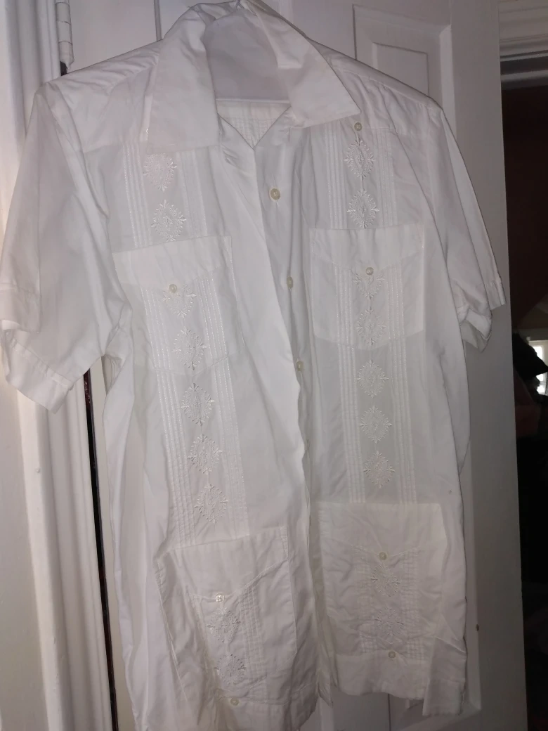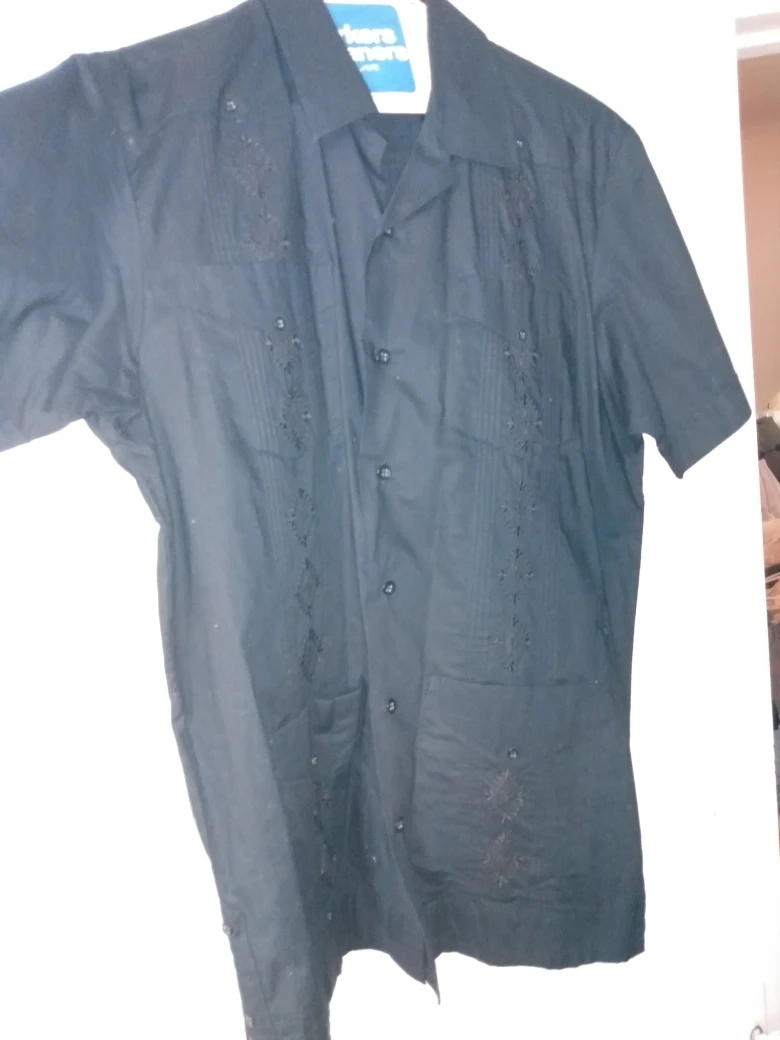 new Steve Barry's men's short sleeve dress shirt meant for over pants with pockets