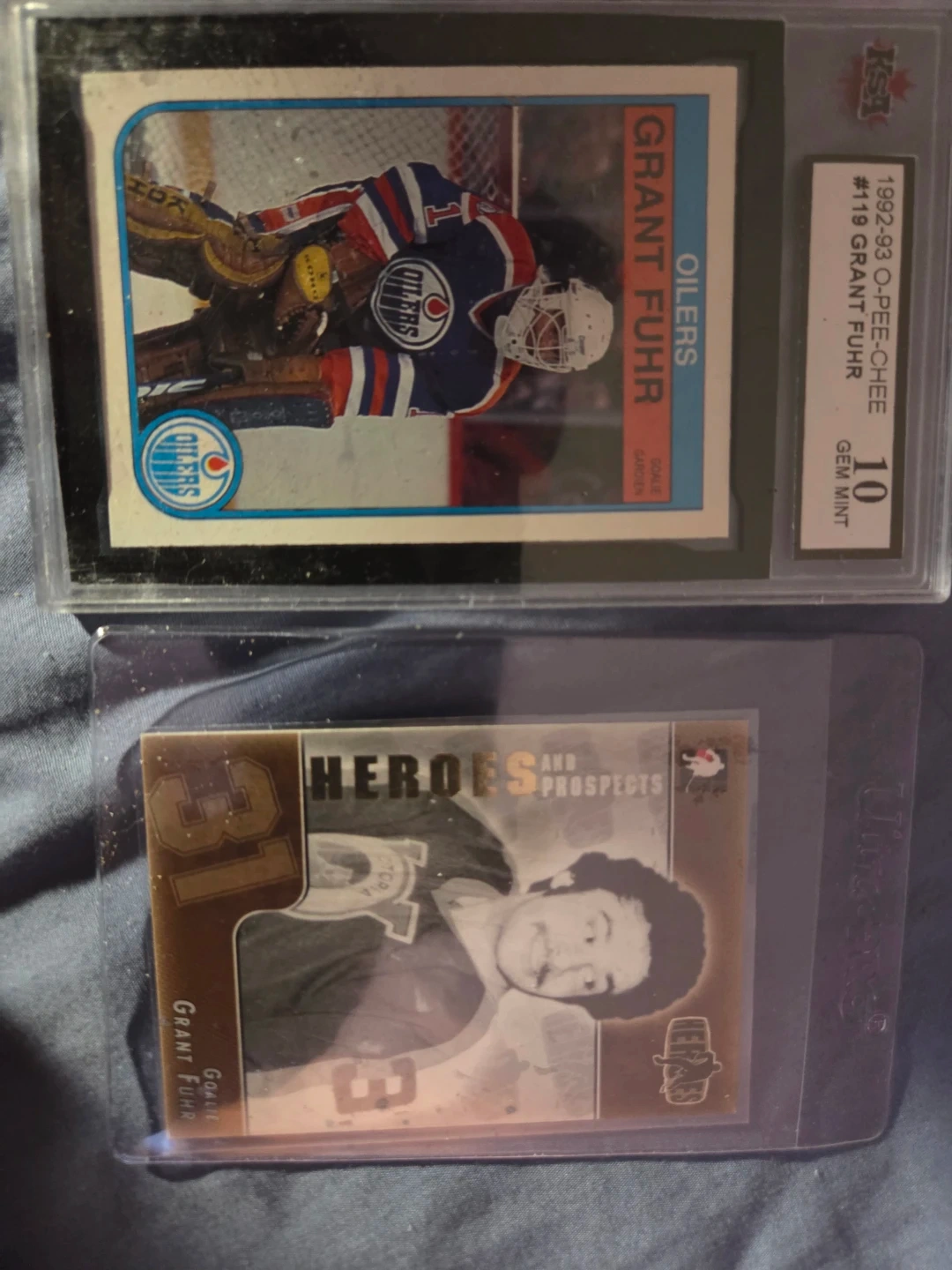 Up for grabs is a 1992-93 O-Pee-Chee hockey card featuring Grant Fuhr, professionally graded KSA 10 Gem Mint. It's card #119 from the set. This card showcases Fuhr in his Oilers goalie gear. This is a great addition for any Grant Fuhr or Oilers collector!