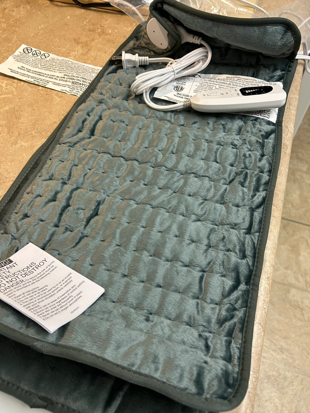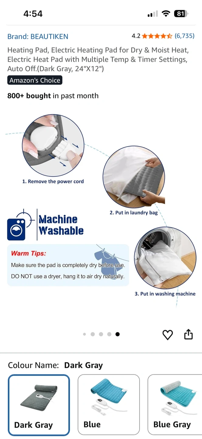 This BEAUTIKEN soft velour mobile heating pad offers multiple temp and timer settings with auto-off. It's machine washable when placed in a laundry bag. Useful for targeted heat therapy.