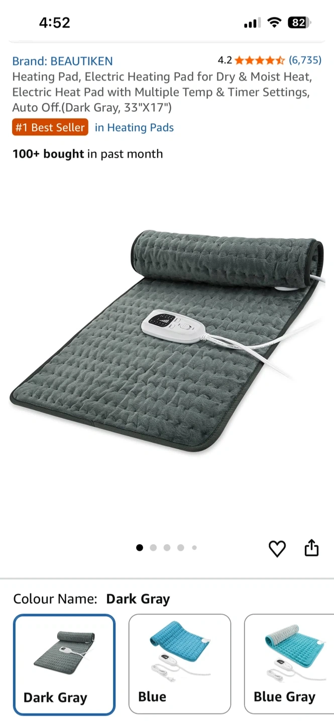 BEAUTIKEN Electric Heating Pad - Dark Gray, 24"x12"