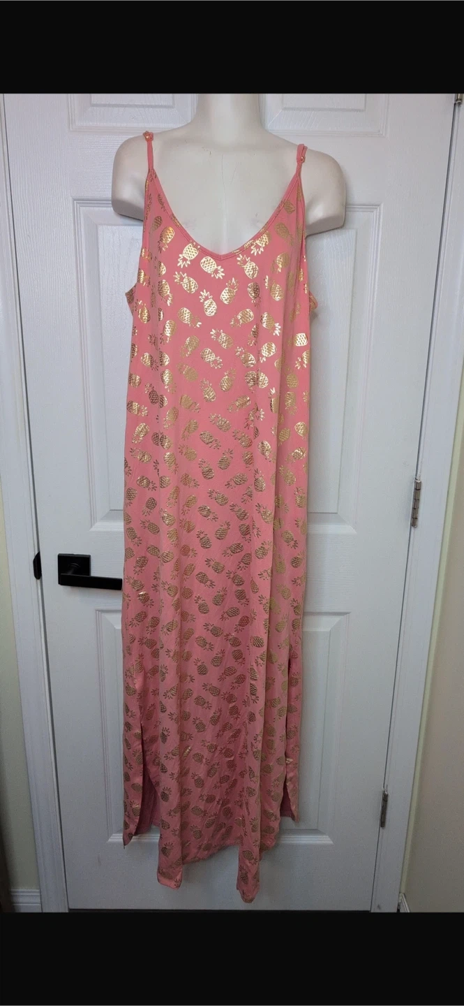 NEW! ROOTS Pink & Gold Pineapple Maxi Dress – Size XL (NWT)