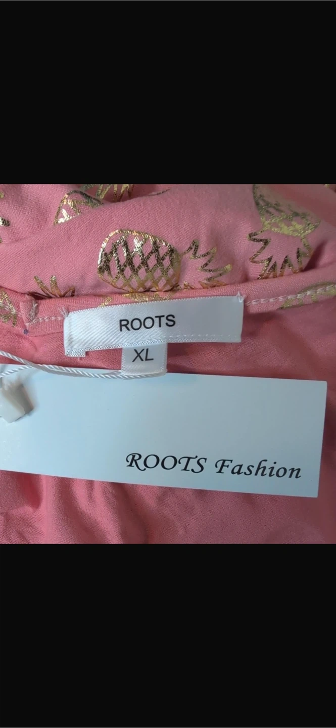 NEW! ROOTS Pink & Gold Pineapple Maxi Dress – Size XL (NWT)