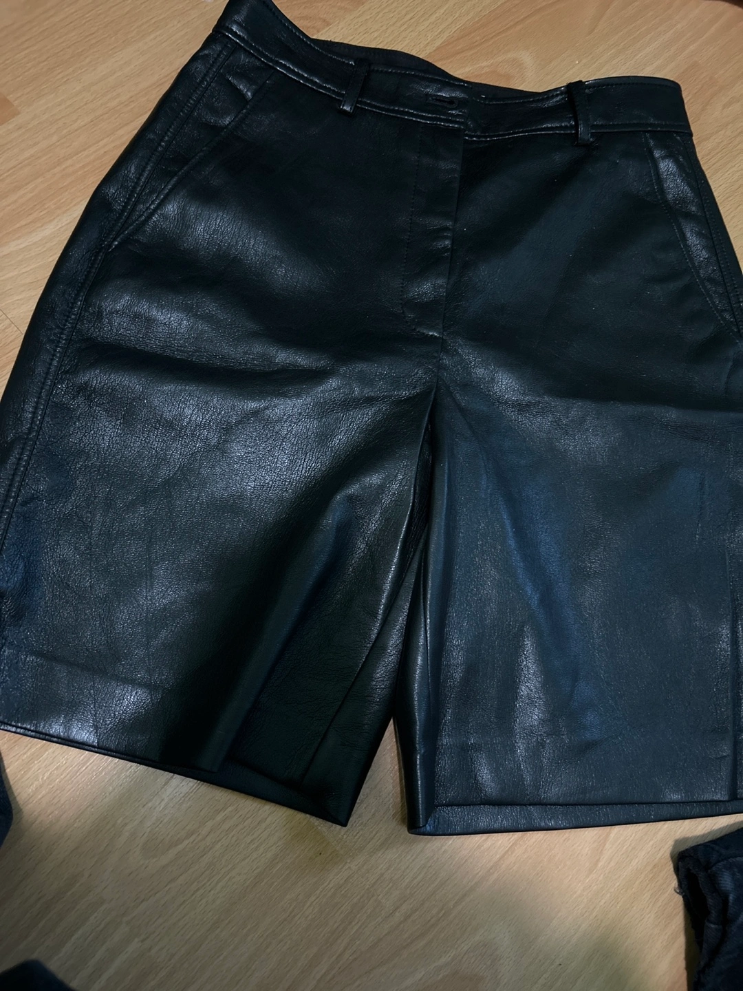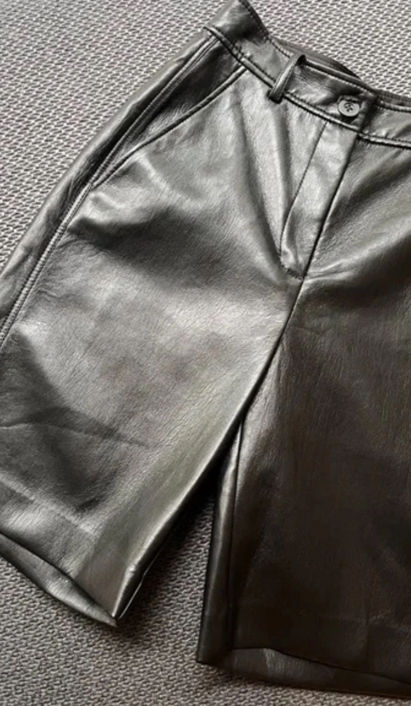 Black leather shorts. Size 4. Mid-length. Good condition. Classic style.