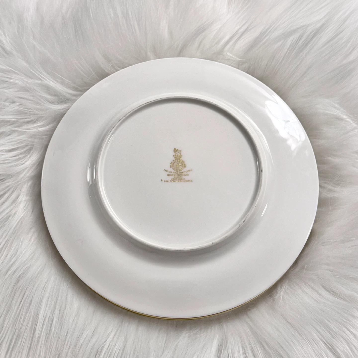 Set of 4 Royal Doulton (made in England) fine bone china 8” diameter plates in Buckingham red pattern. No chips, cracks, crazing or gold loss — all plates ring/ping