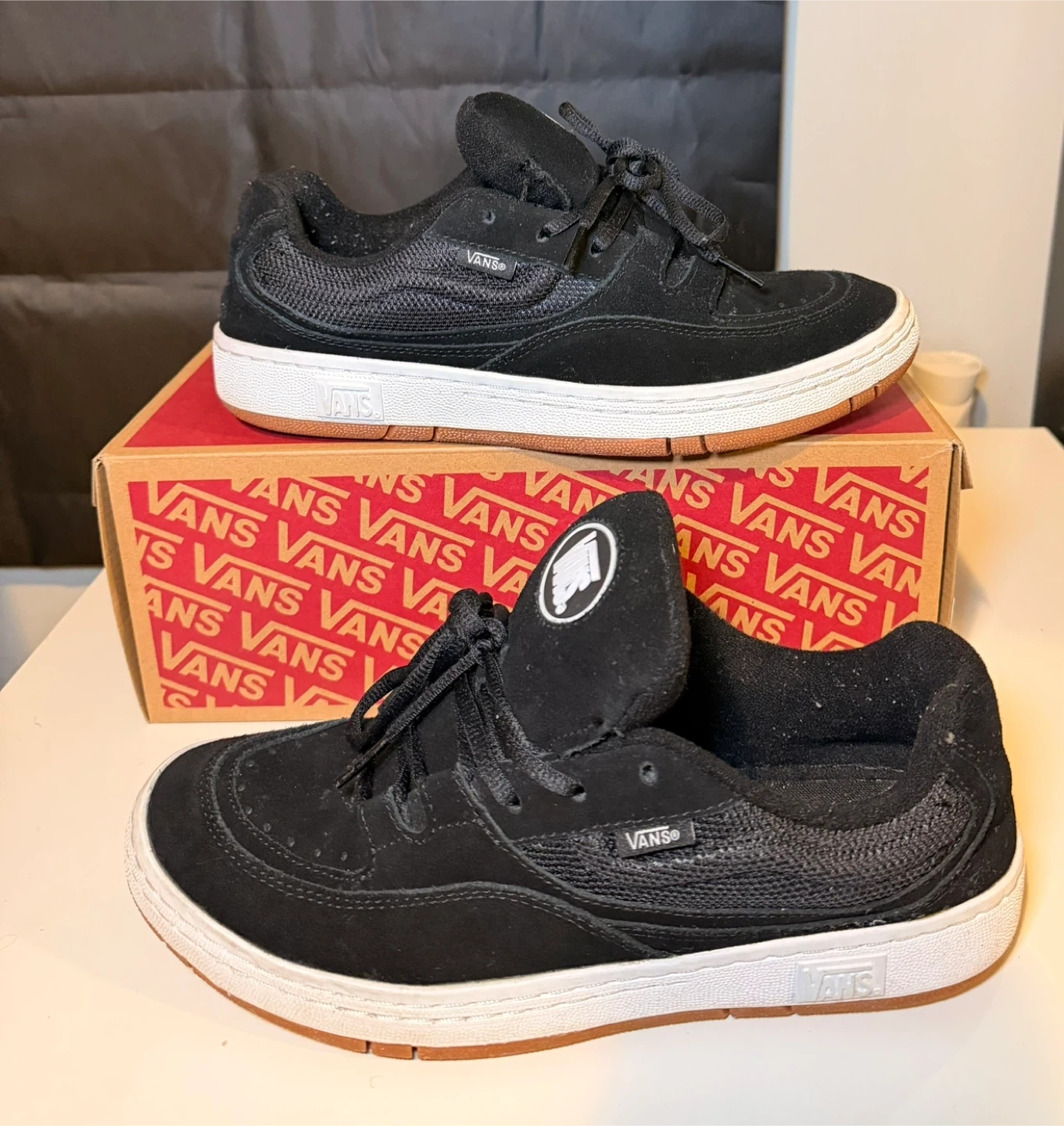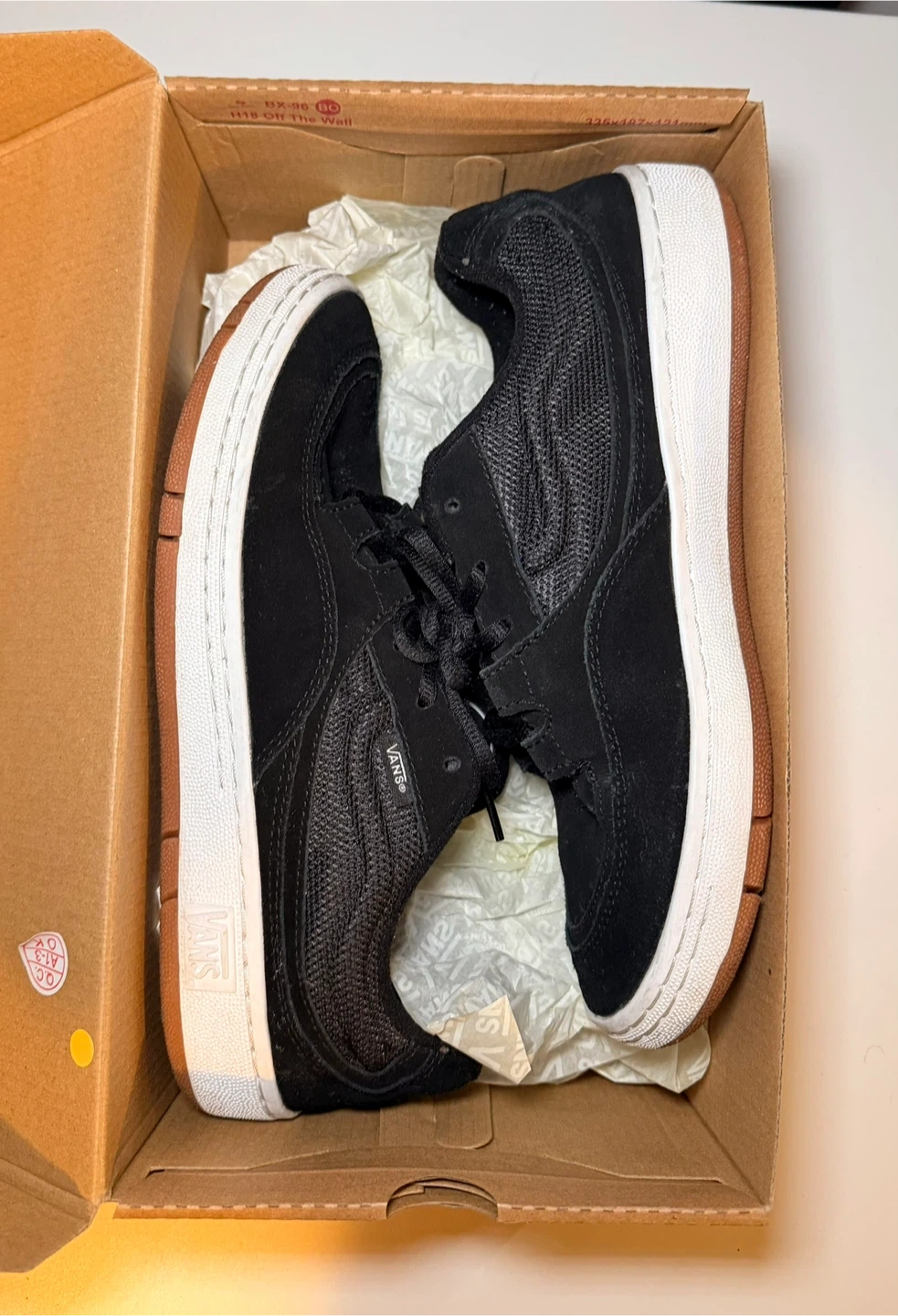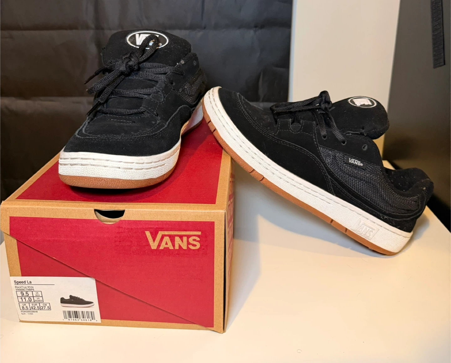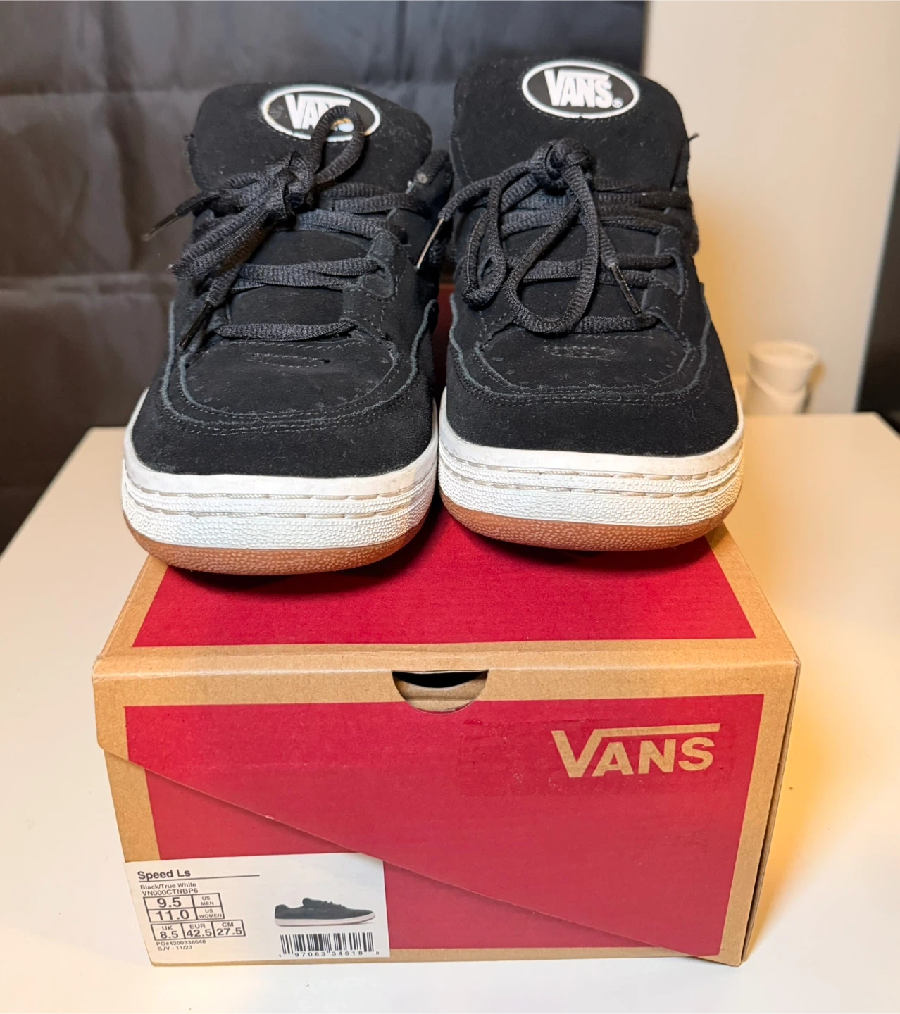 Vans Speed LS shoes in black. Suede and mesh upper with a white sole and gum accent. Comes with the original box.