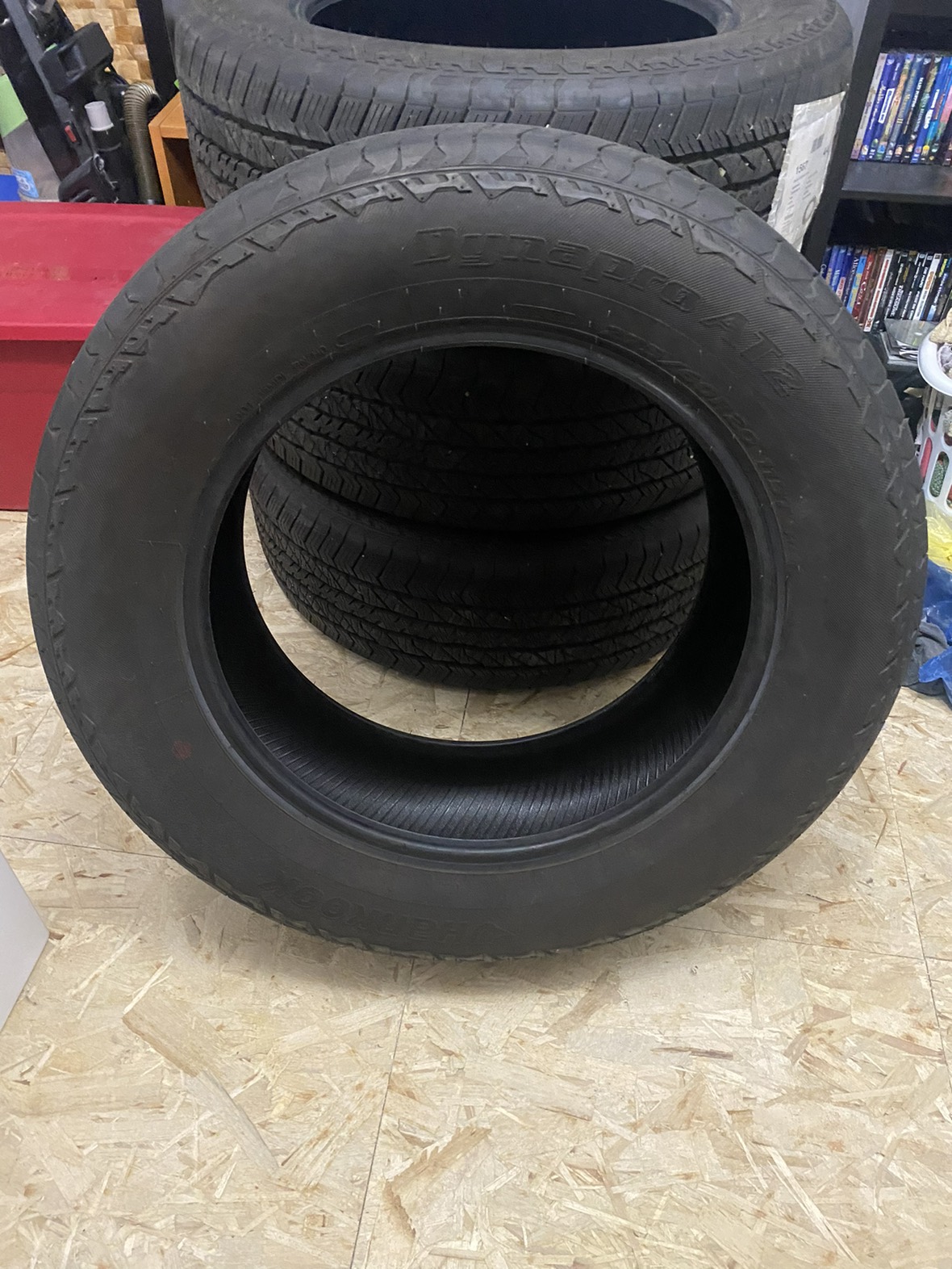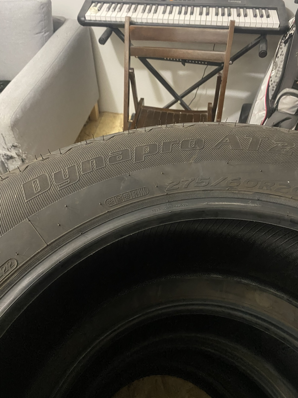 Buy & SellHankook Dynapro AT2 tiresHankook Dynapro AT2 tires$800Set of 4 275/60R20 115T winter rated 99% tread left Change offs from my F 150 No patches , or damage , been in storage since took them offConditionLike newWHERE TO MEETCheck LocationView MapSELLERverifiedJayBisset1085 reviews0 chats·1 favorites·152 viewsSEND CHAT TO SELLERHi Jay! I’m interested in your listing.Hi Jay! I’m interested in your listing.Get the Karrot app to chatSign In to chat