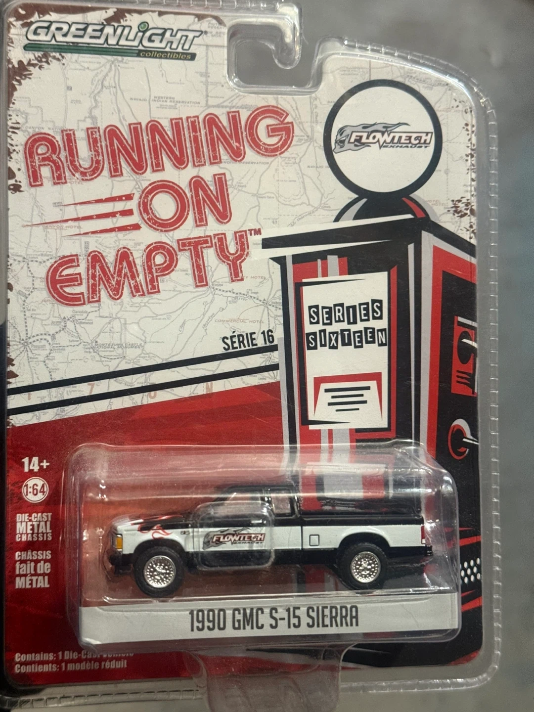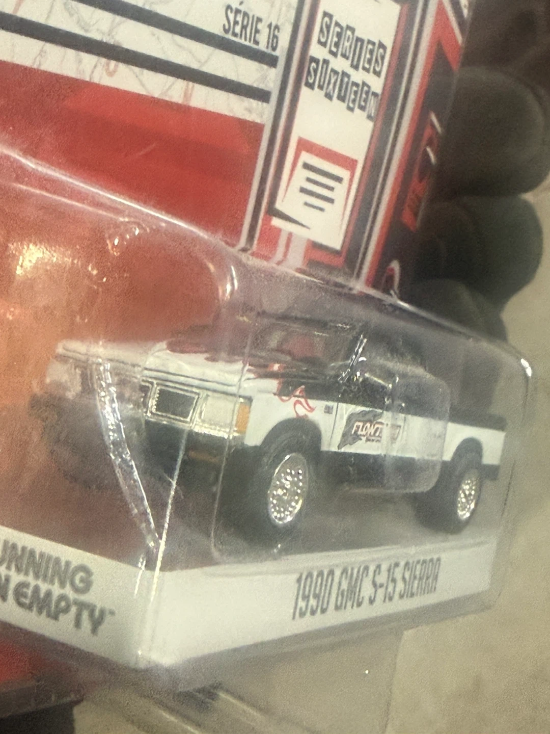 Greenlight die-cast metal 1990 GMC S-15 Sierra truck from the Running on Empty series. It's part of Series Sixteen and comes in 1:64 scale. This detailed model is a must for everybody’s collection.