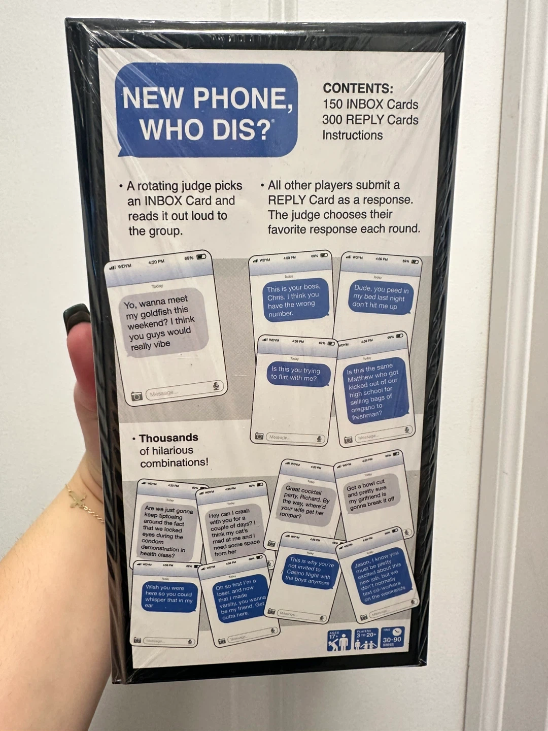 Selling a copy of the "New Phone, Who Dis?" adult party game! It's from the creators of What Do You Meme? and includes 150 Inbox cards and 300 Reply cards, plus instructions.