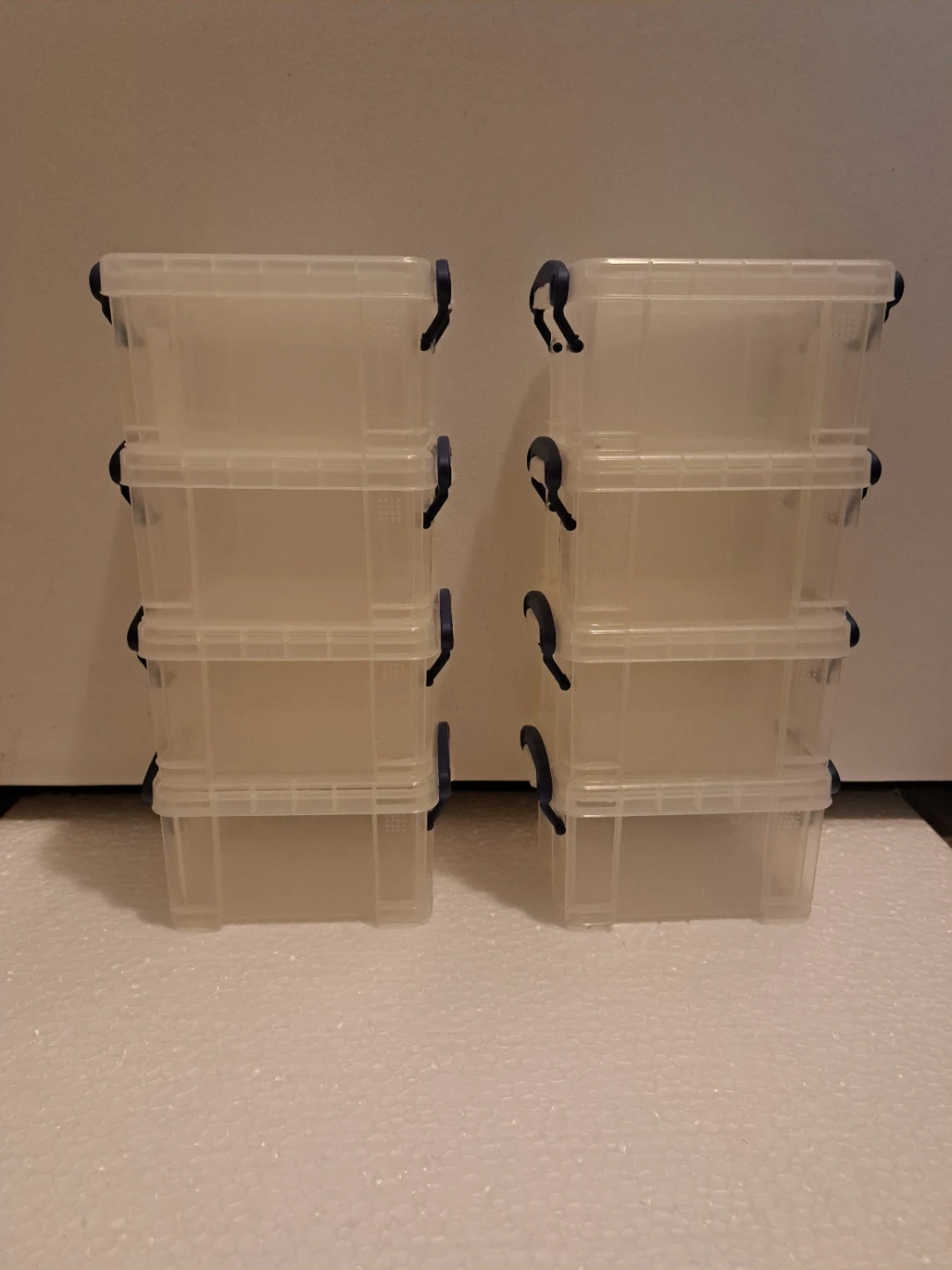 Set of 8 Really Useful Box storage containers with lids. Price is for all 8.