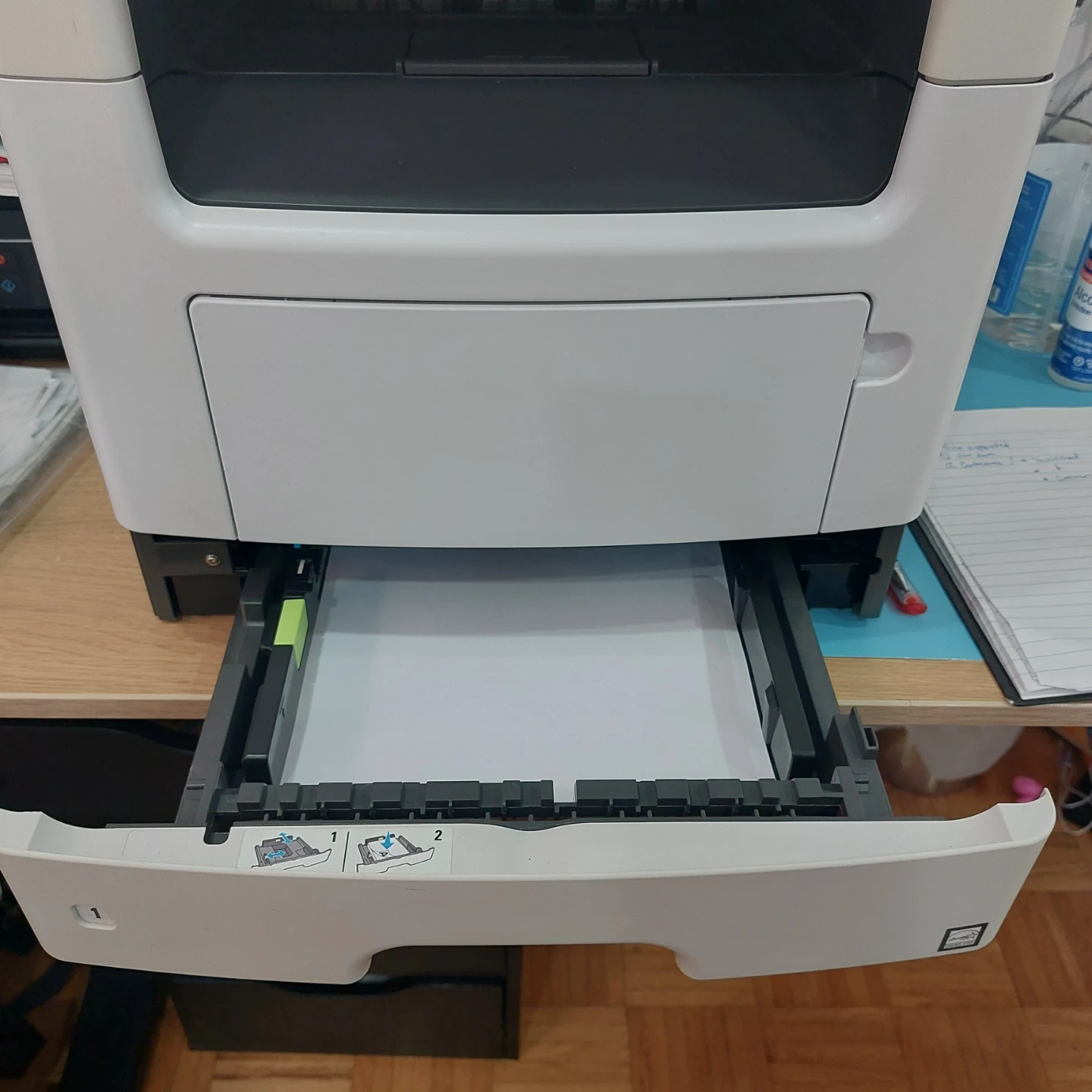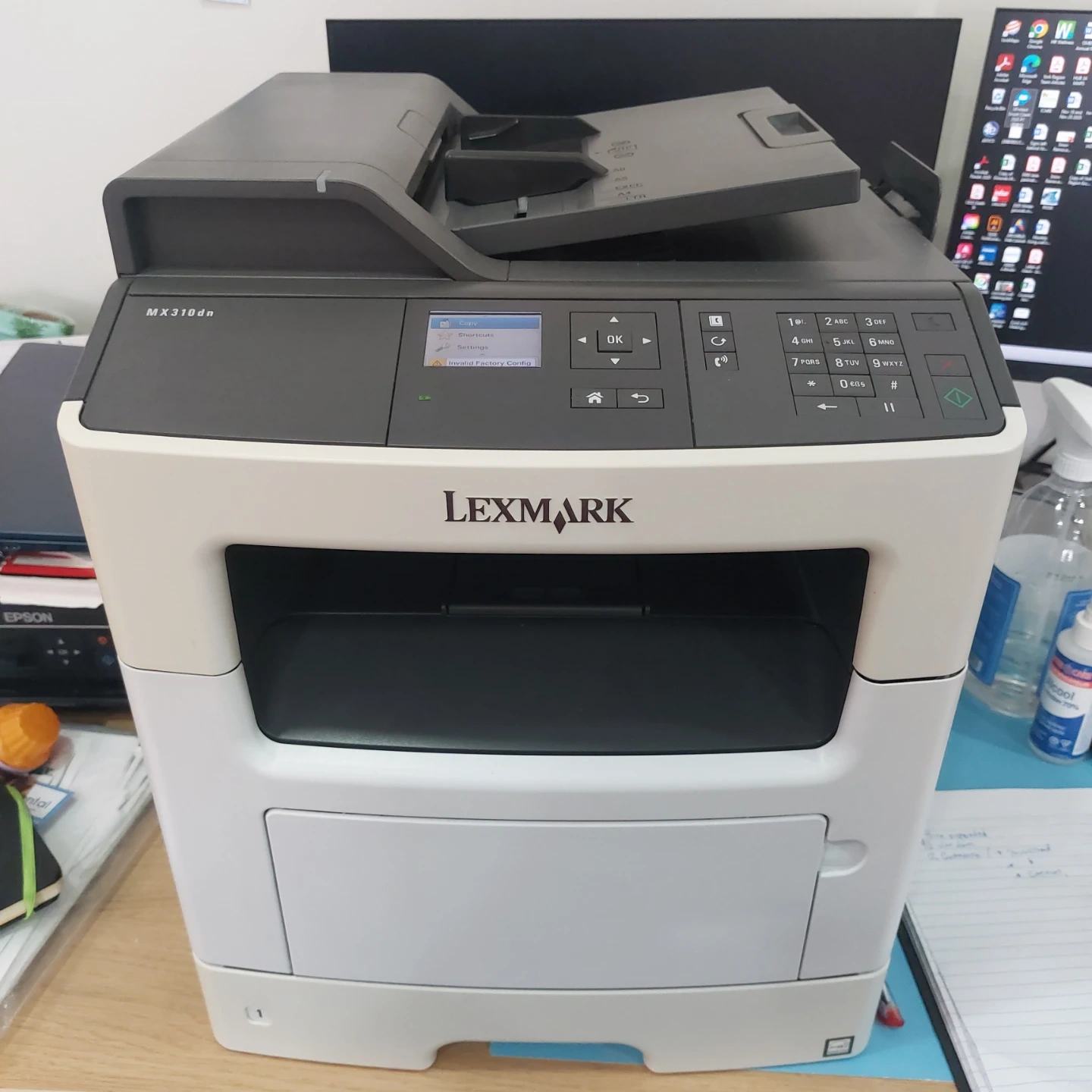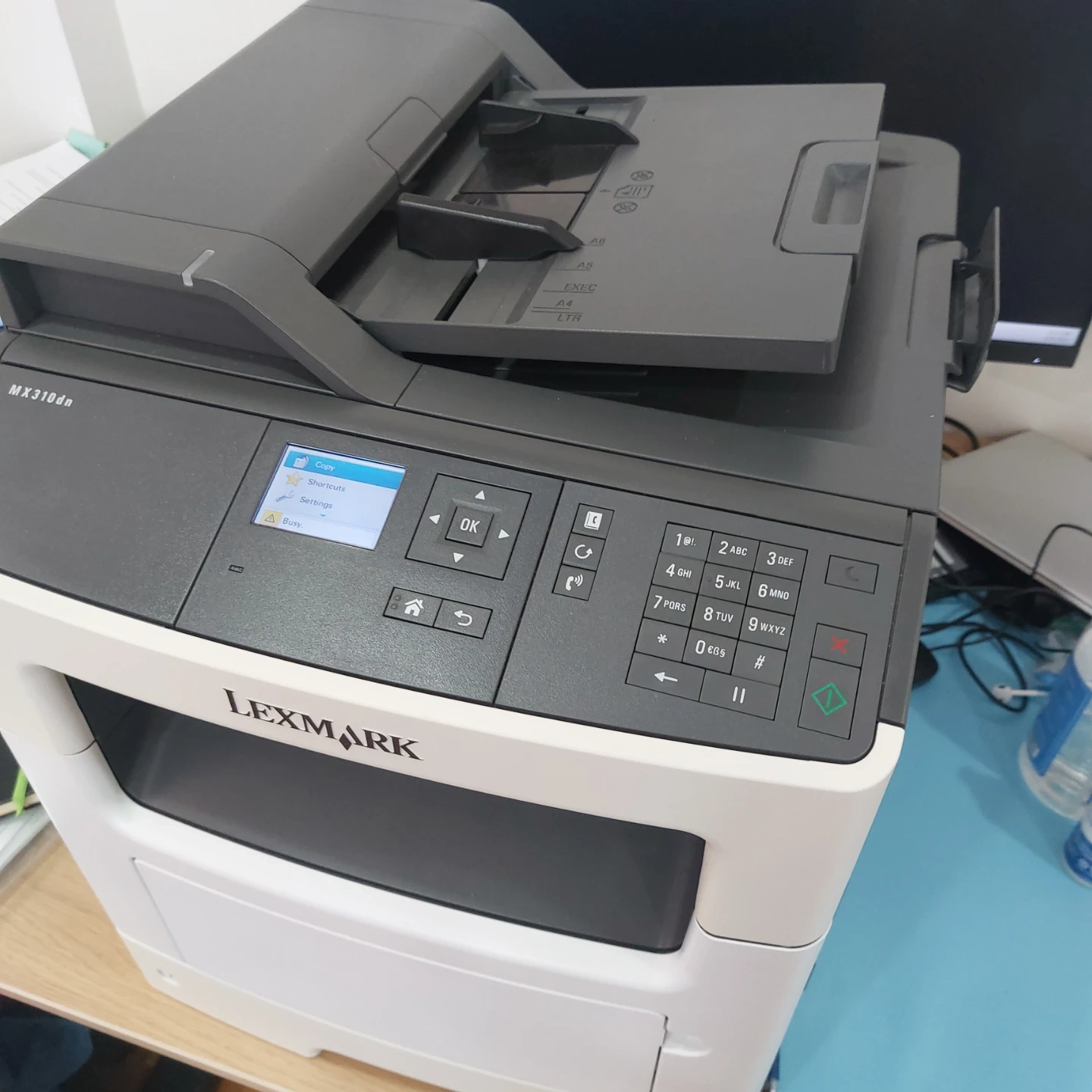 This Lexmark MX310dn is a monochrome multifunction printer. It handles printing, copying, and scanning. It's a reliable office machine.