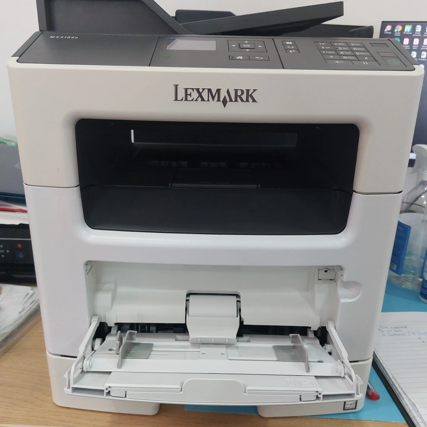 This Lexmark MX310dn is a monochrome multifunction printer. It handles printing, copying, and scanning. It's a reliable office machine.