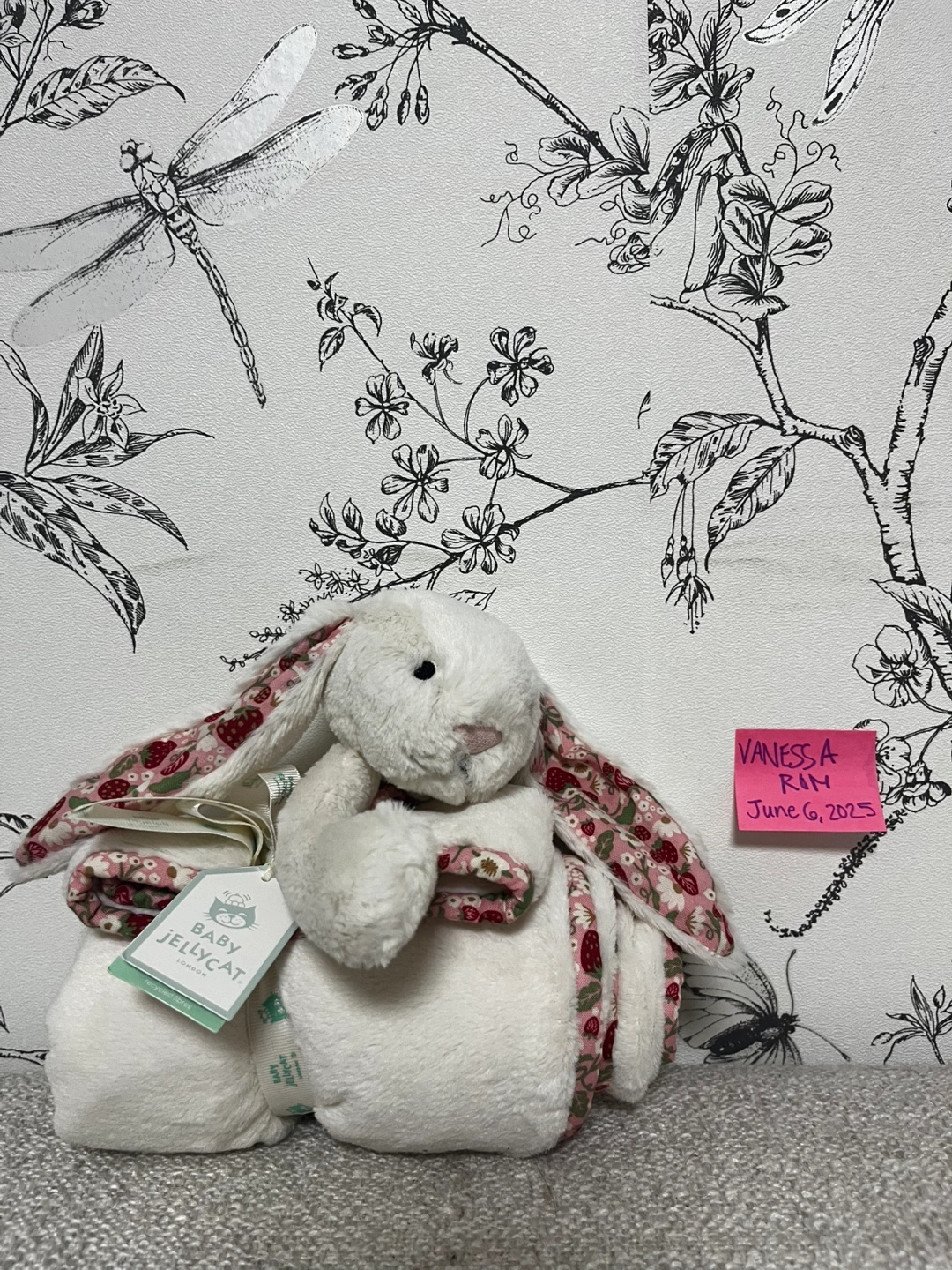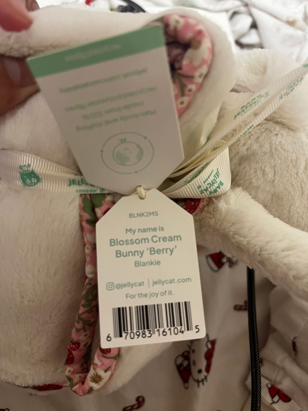 Jellycat Brand new blossom bunny cream “berry” blanket. A soft, fluffy bunny-themed blanket. Features a cream-coloured base with floral accents. The bunny is soft to the touch. Perfect for snuggling up with at the end of the day. Retails for $125 plus tax asking $110. Pickup near high park